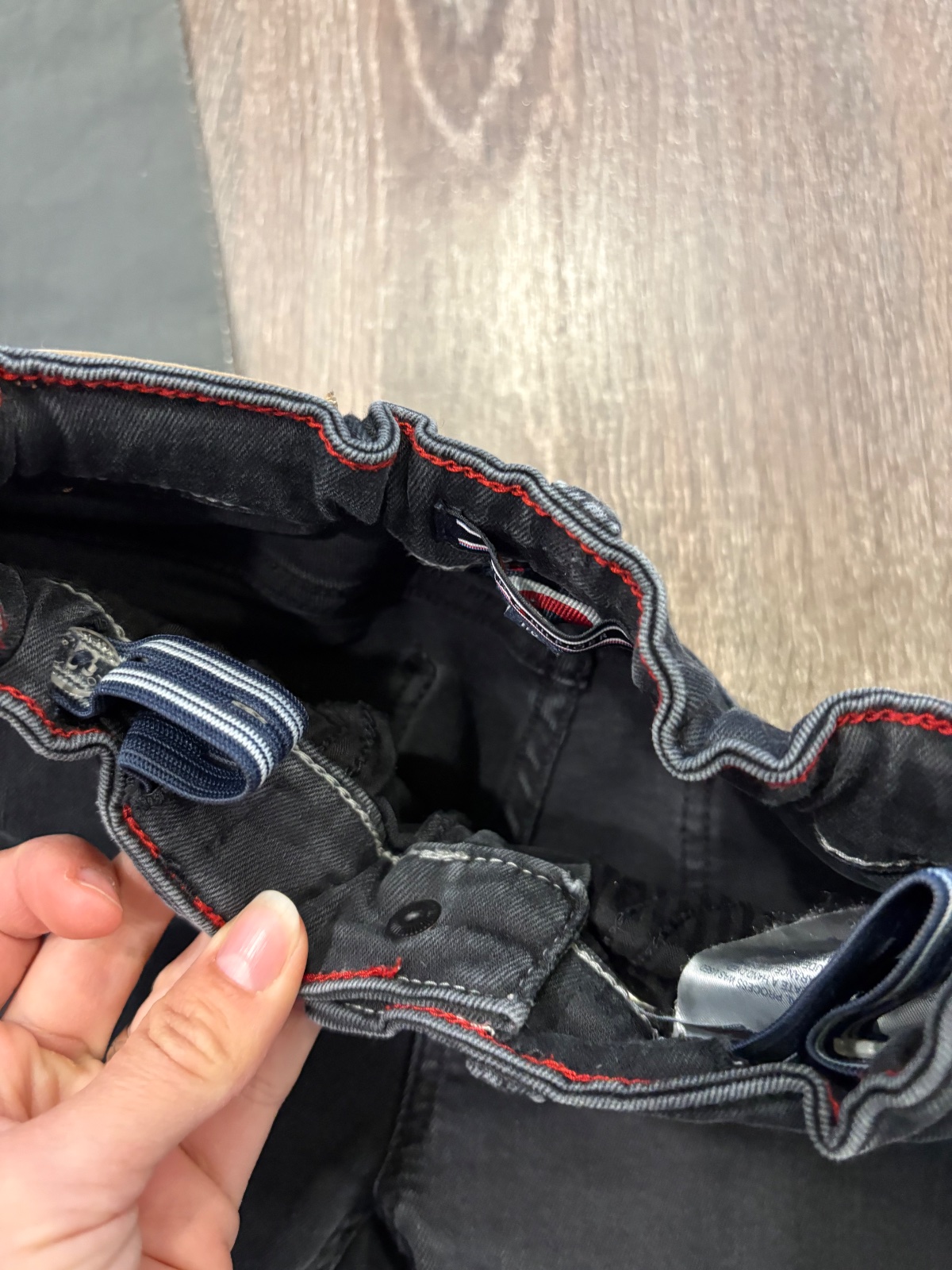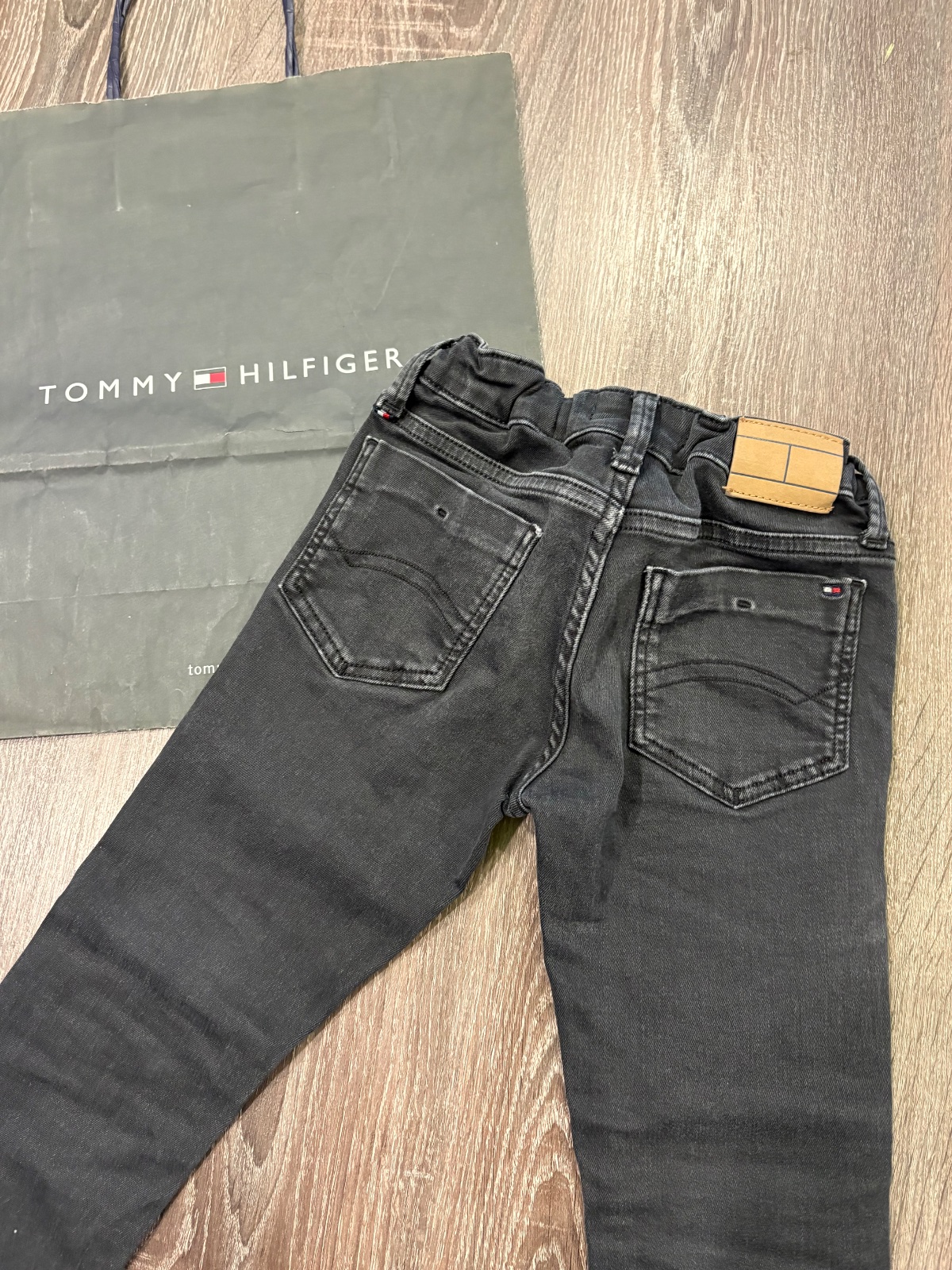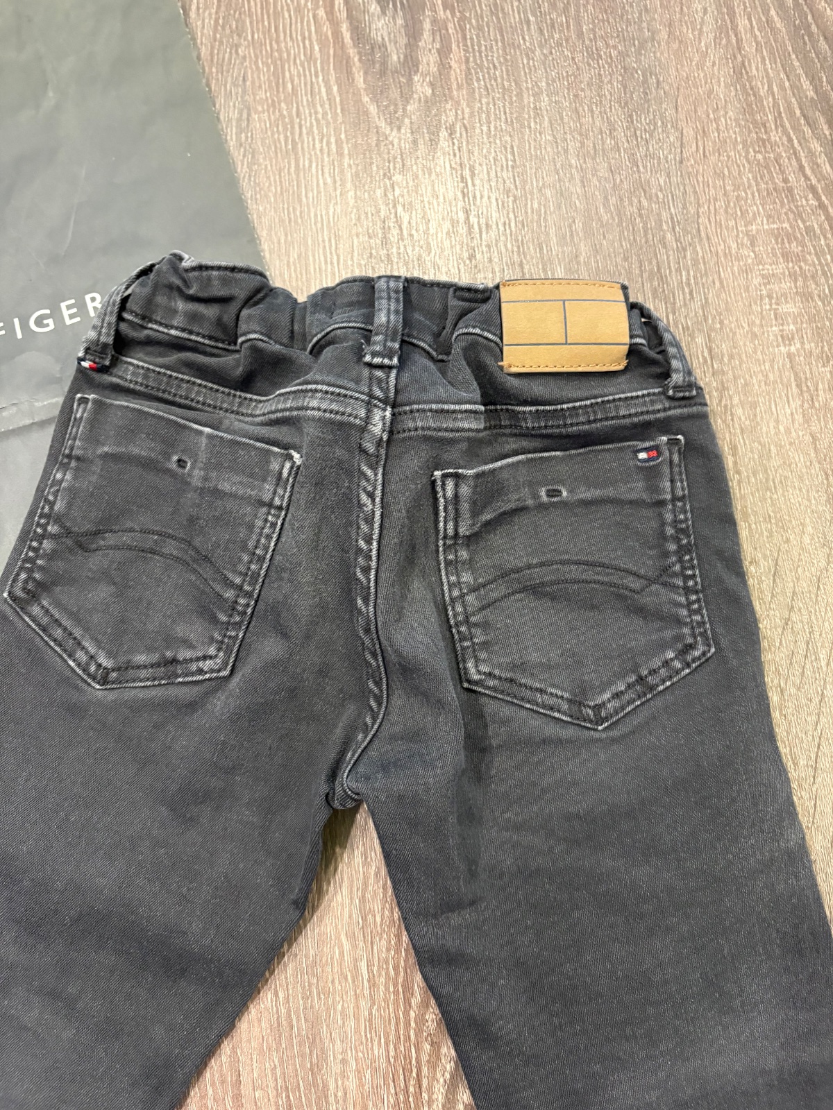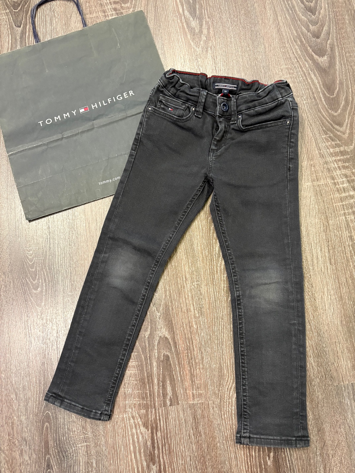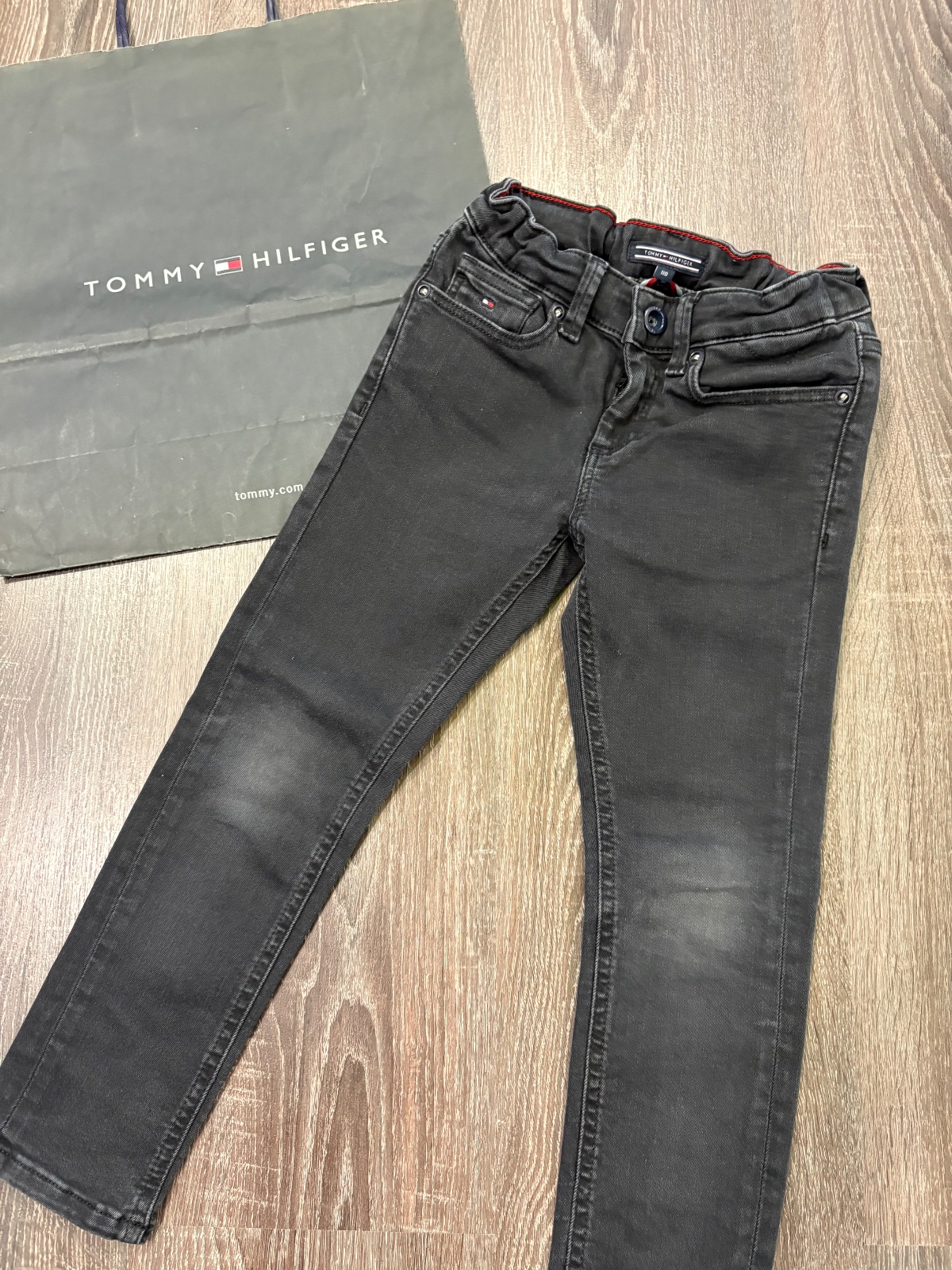 20.Tommy Hilfiger chlapcenske vysuchane rifle ( od nova boli vysuchane), velkost 110,v pase je stahovacia gumka,dlzka je 62cm a sirka v pase je od 27x2cm do 30x2cm.