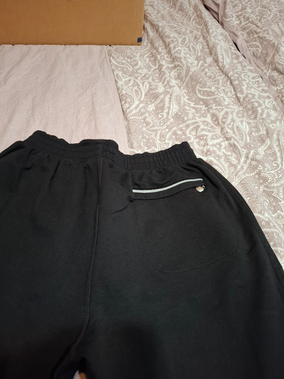 Tepláky minimálne nosené, veľkosť uvedená S ale spokojne aj M. Pás od 30cm - 45cm, dĺžka 98/99cm. Vrecko aj vzadu.