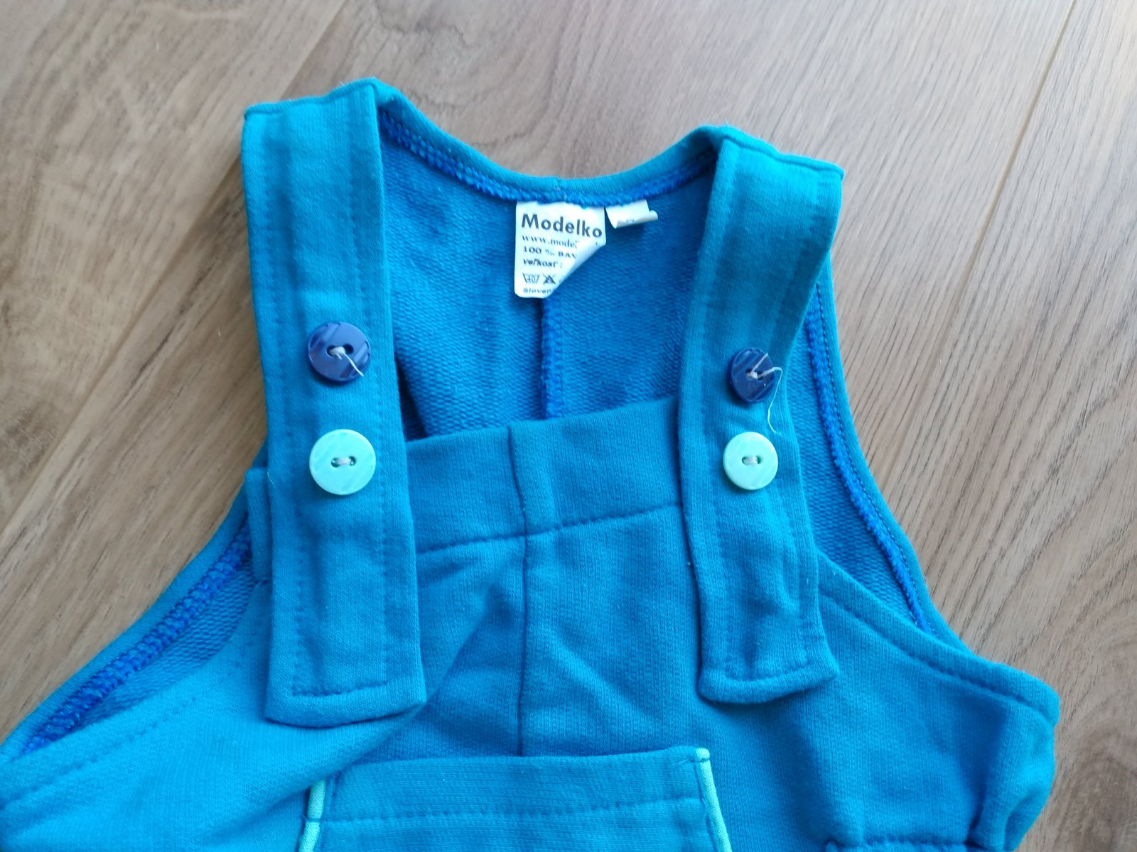 Kvalitné tepláčiky na traky, v top stave. Elastický pás sa prispôsobí, aj traky sa dajú zapnúť dvomi rôznymi spôsobmi. Vpredu funkčné vrecko s obrázkom. 100% bavlna. Cena bez pošty.