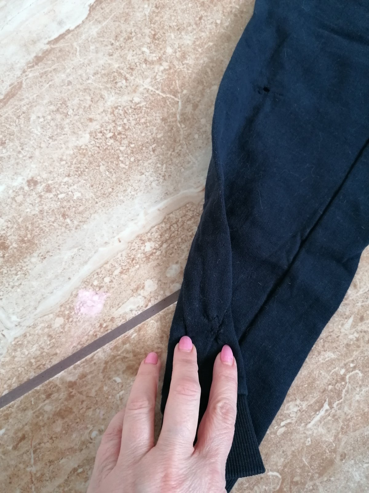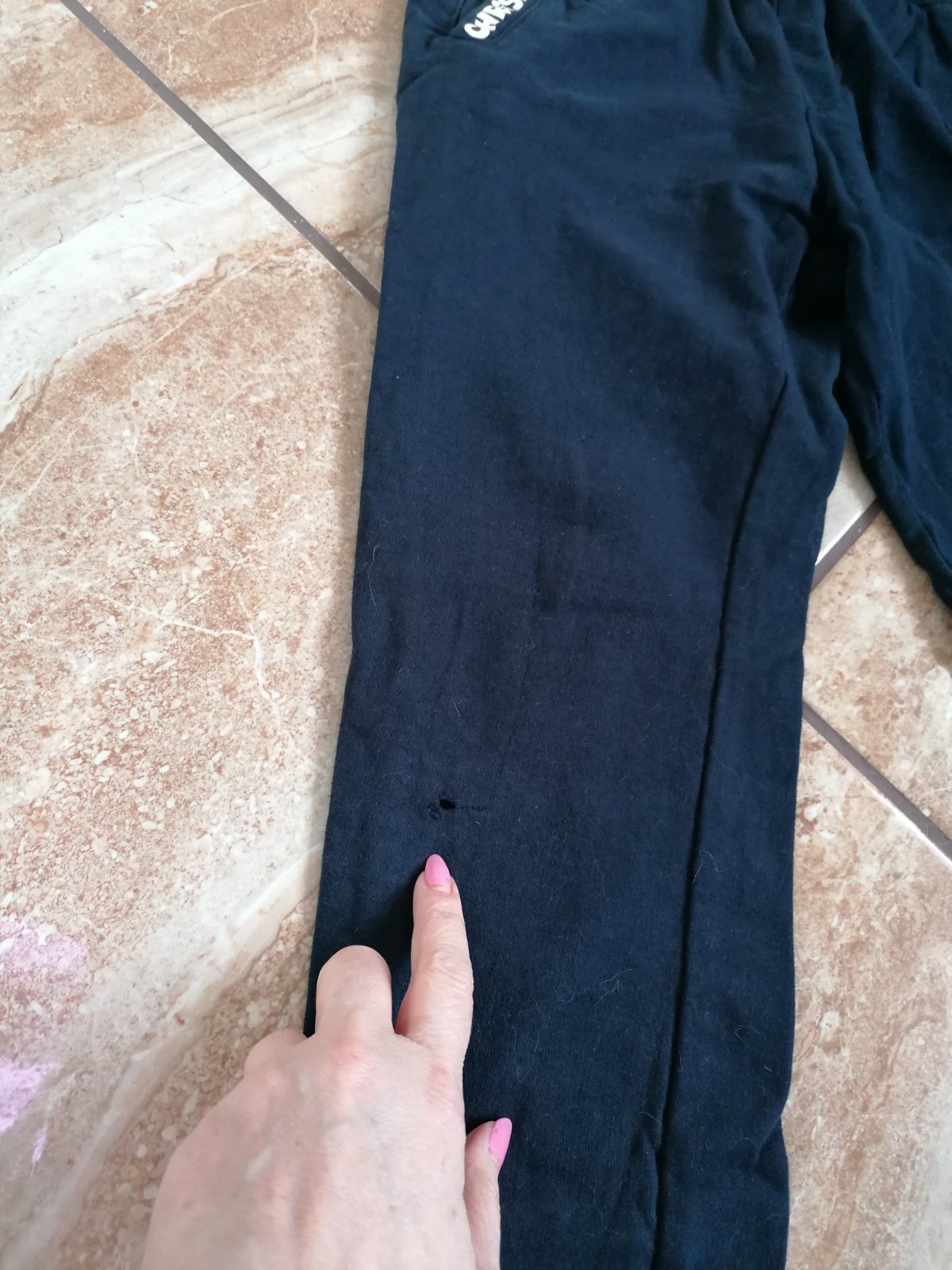 Na modrych su dierky na pravej nohe