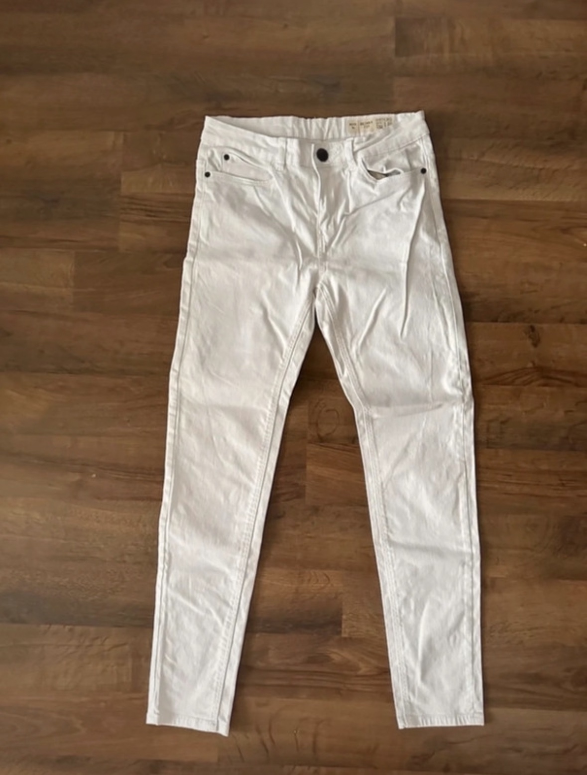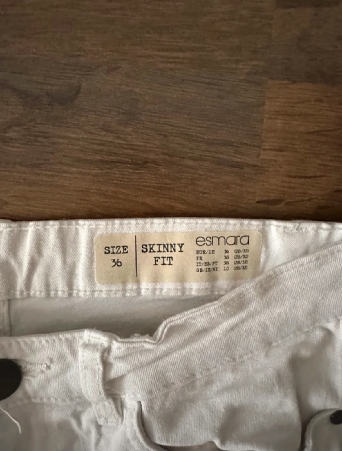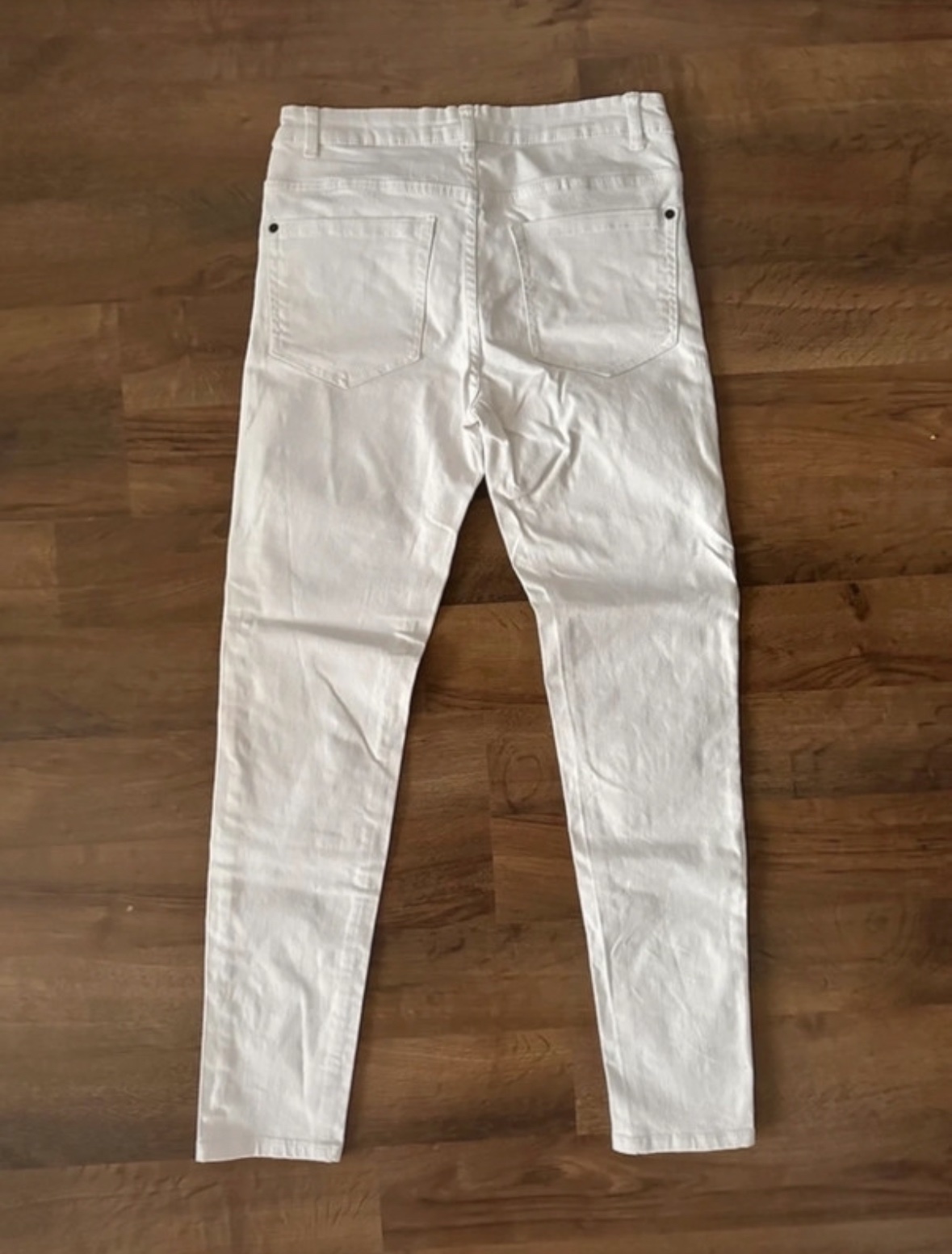 Predávam biele rifle značky Esmara, strih skinny fit, vo veľkosti 36. Rifle sú takmer nenosené, vo veľmi dobrom stave, bez poškodení alebo známok nosenia.