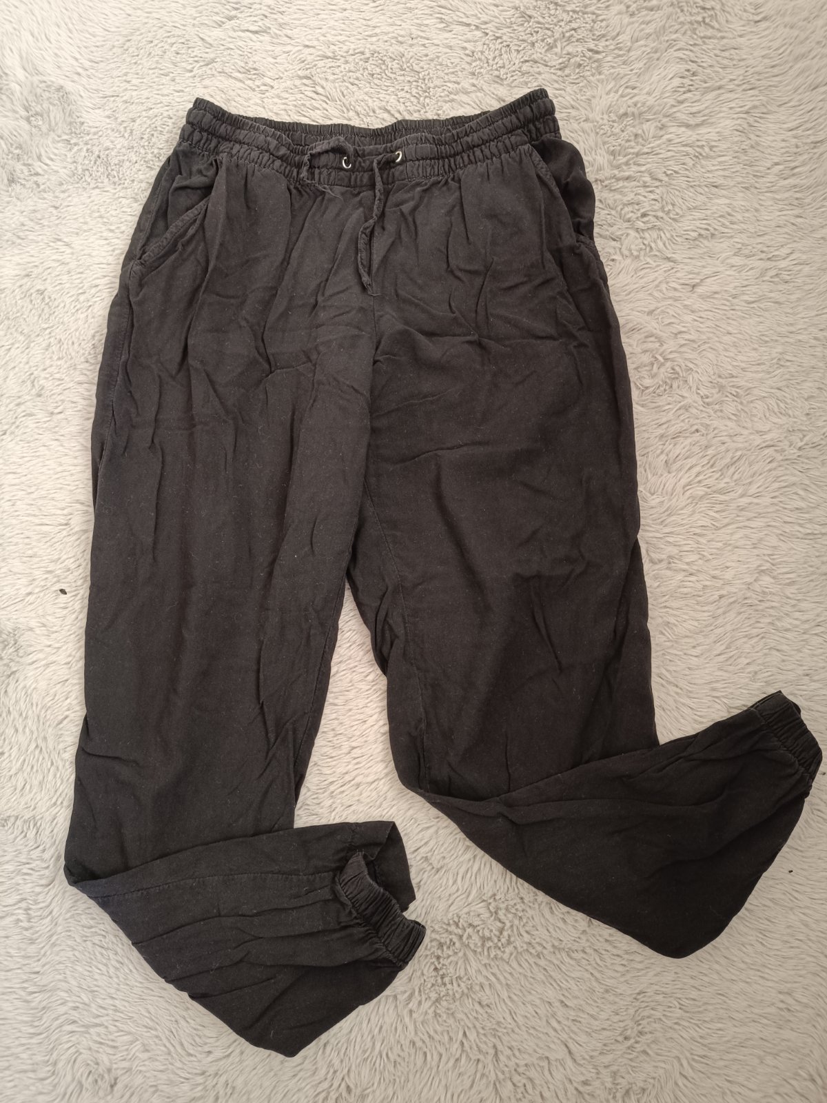 Predán elegantné nohavice veľ.34 dĺžka 96,5. Šírka nohavici 22x2, pás 35x2, sed 25. Látka je lesklá, materiál 70% polyester, 27% viskoza, 3% elastan. Bez poškodenia cena 8€+ poštovné