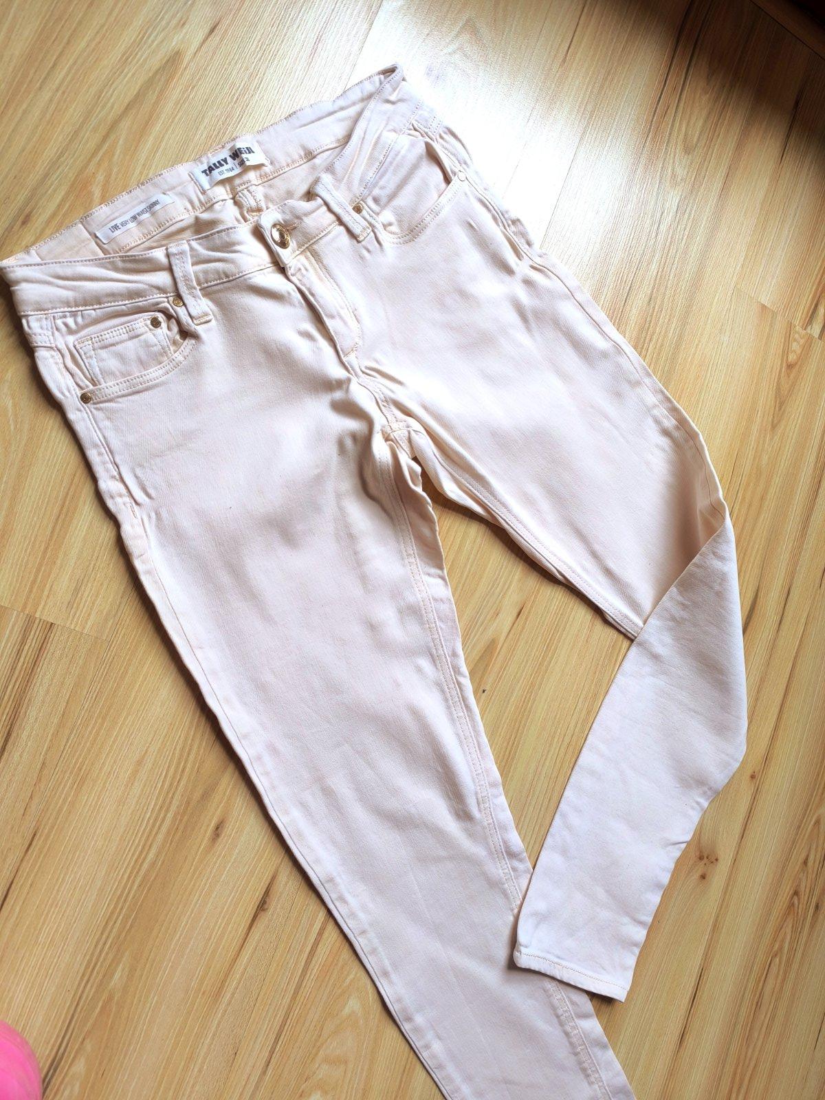 Bledo ružové rifle zn. Tally Weijl, zlaté detaily, predné aj zadné vrecká, 98% bavlna, 2 % elastan. Párkrát oblečené, bez poškodení, pri zipse nariasene ale po oblečení nevidno.