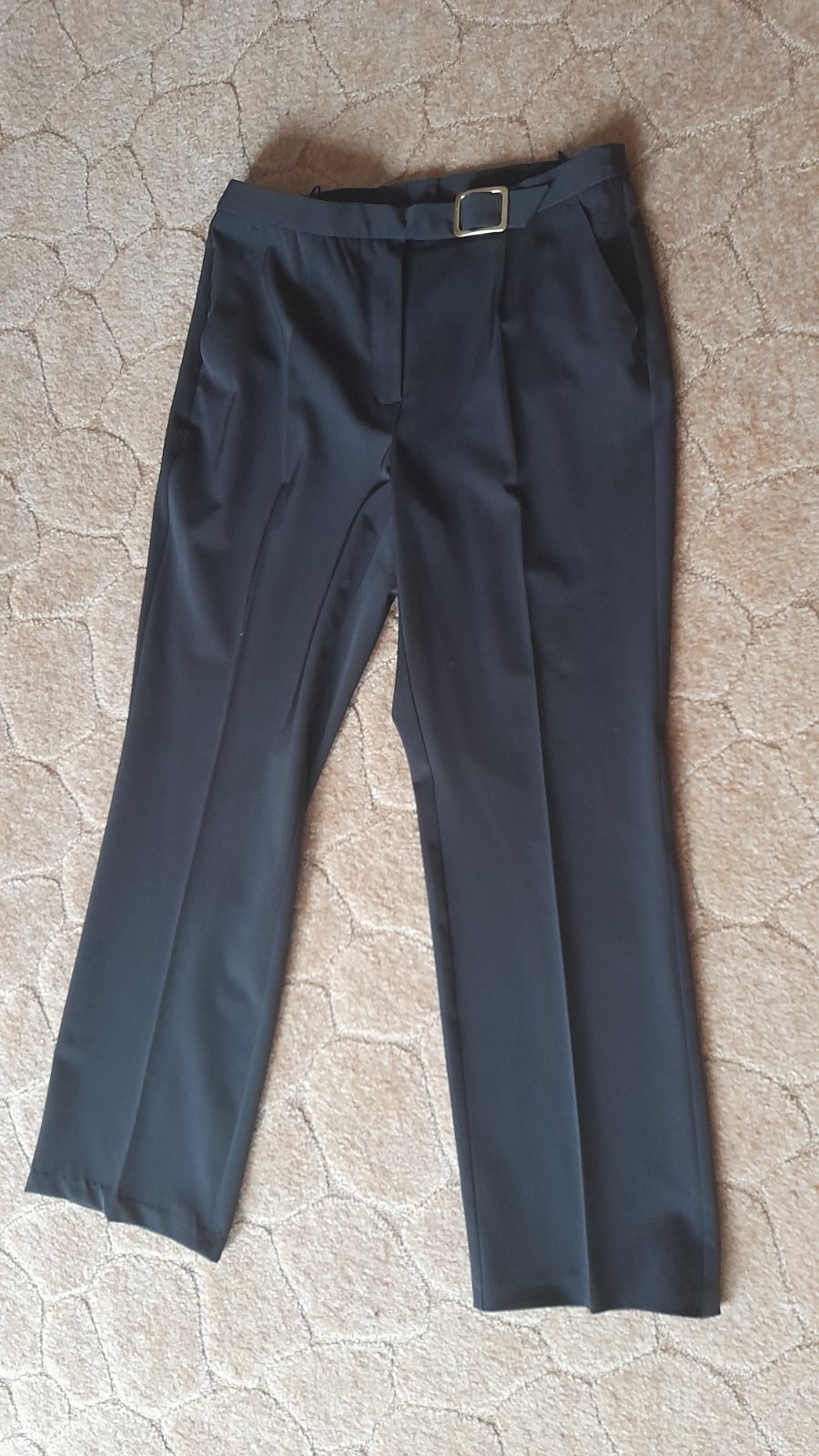 Kvalitné elegantne cierne nohavice so zipsom vpredu,doplnené ozdobnou sponou.Po bokoch majú vrecka