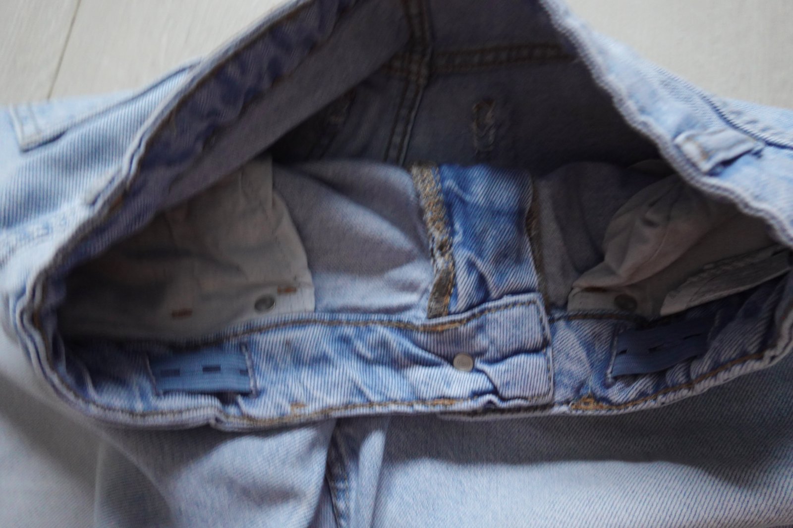 super stav,dlžka 94cm,od rozkroku 70,5cm,v páse je regul. gumka