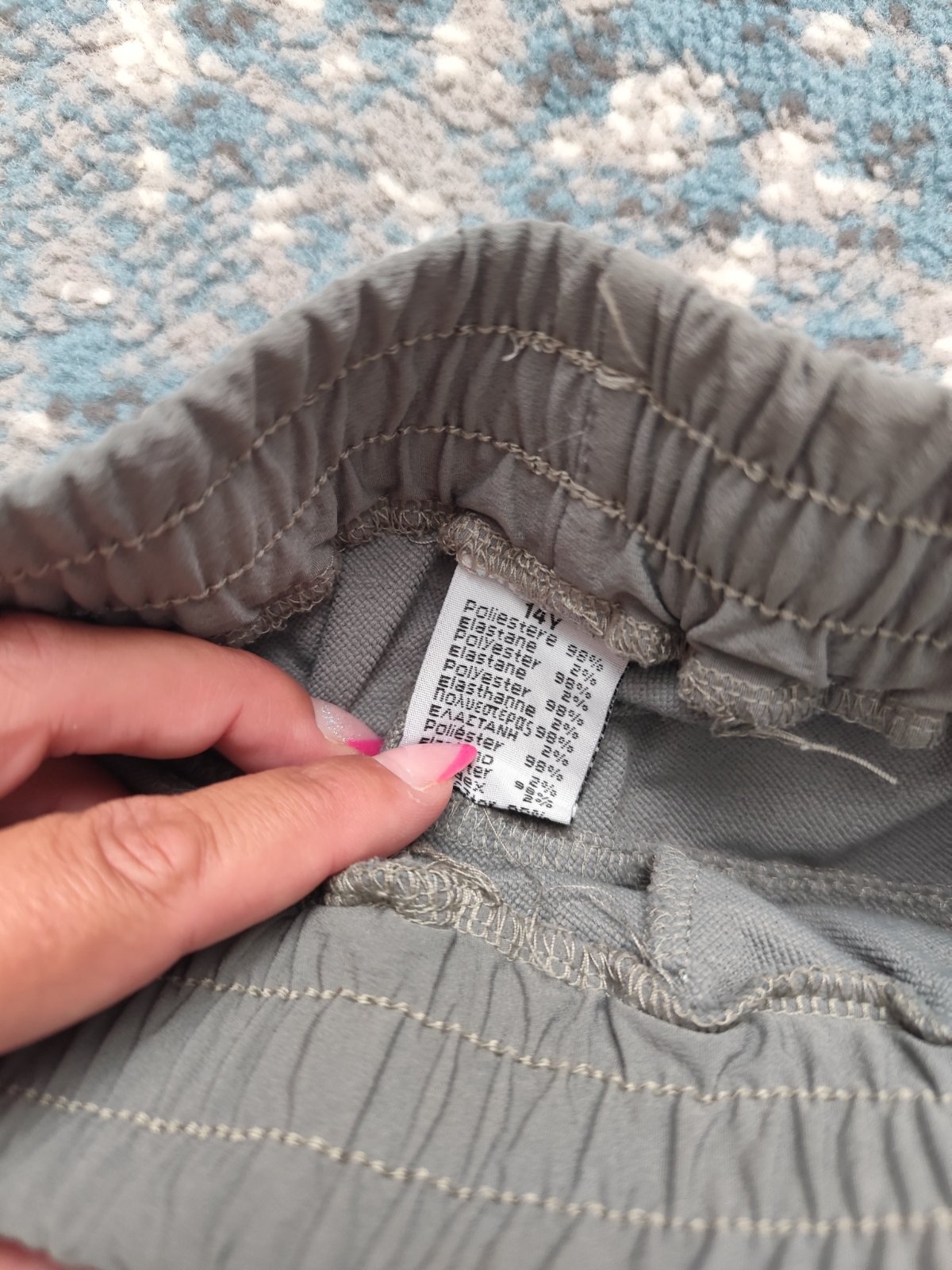 Veľkosť 152-158 pre 12-13 rokov, pas 36cm, boky 41cm, dĺžka 89cm, tenké, pohodlne, malo nosene na šnúrku na sťahovanie, dve vrecka na zips, vhodne na turistiku aj na bežne nosenie do školy a von. C...