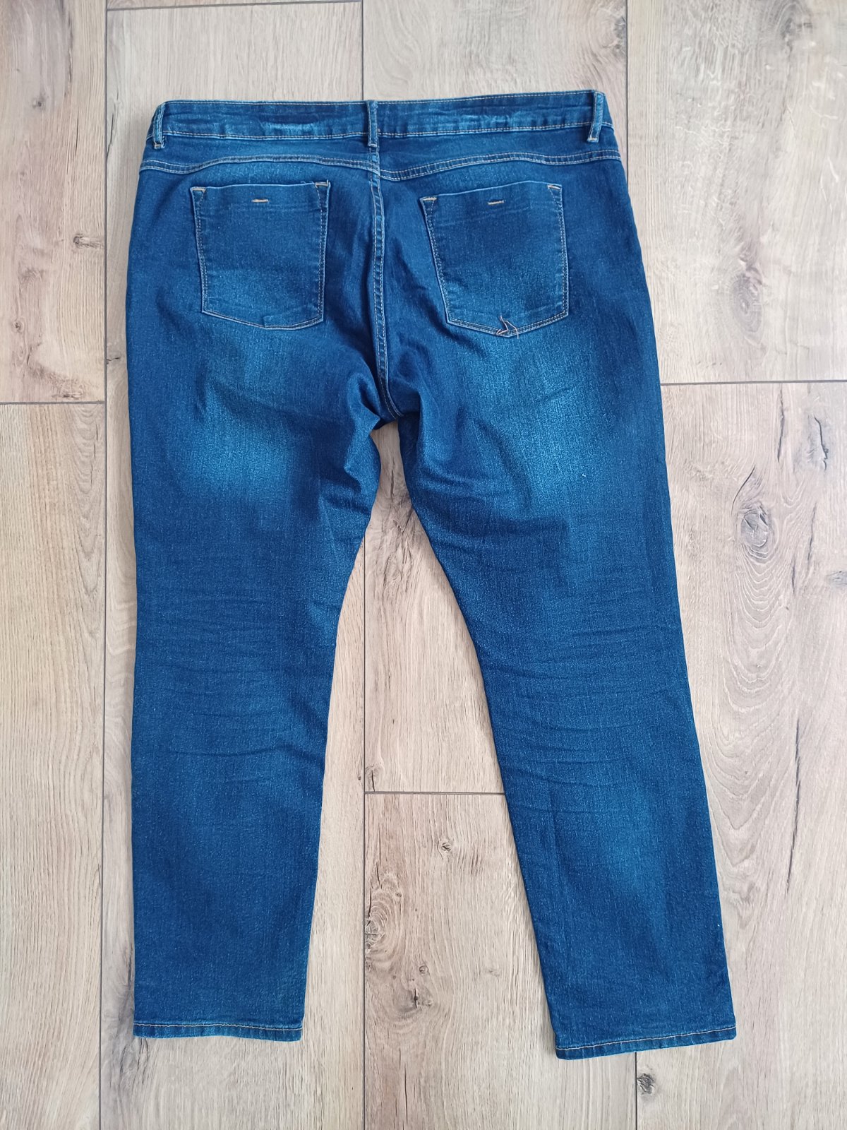 Predám dámske rifle sýtej modrej farby, v oblasti stehien a zadku mierne vyšúchané. Rifle sú rovného strihu. Zapínajú sa na gombík a zisp.