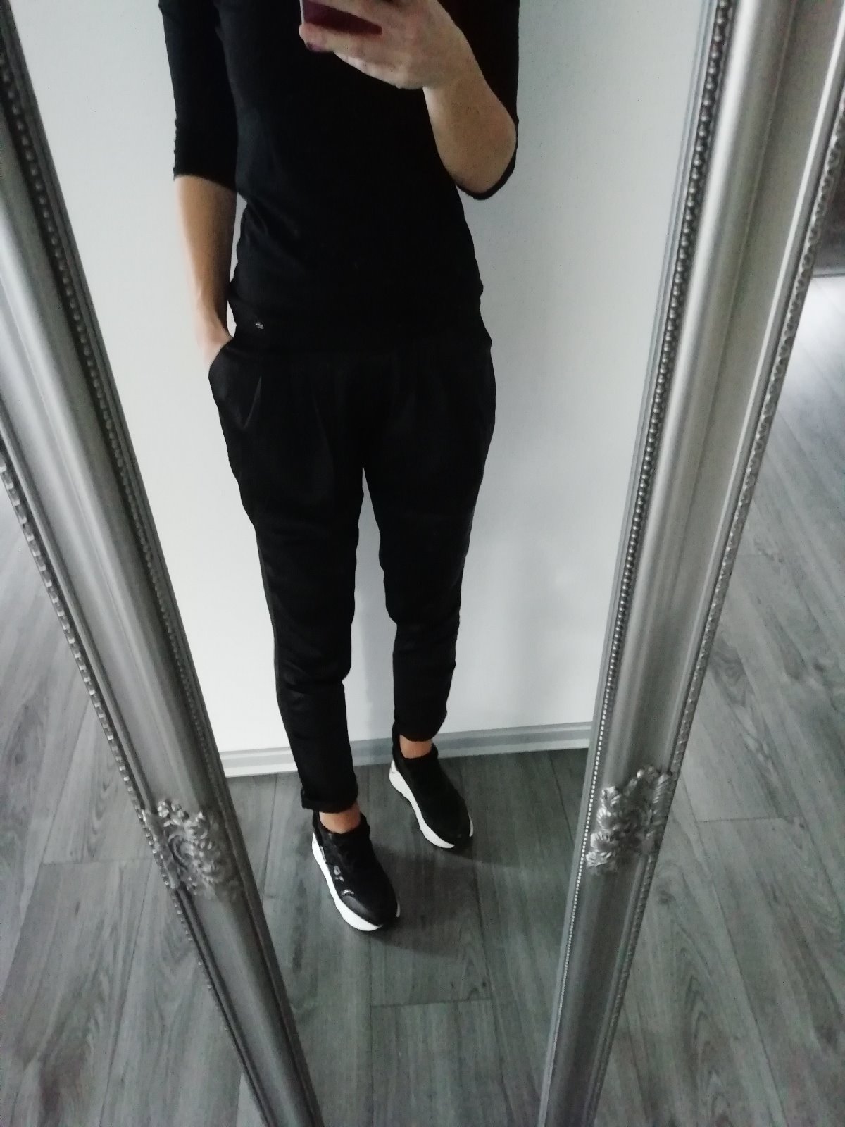 Krásne značkové pudlove nohavice, príjemný padavý materiál. Sú nové, veľkosť písaná 34 ale sadnú na S-ko. V prípade nejakých otázok ma neváhajte kontaktovať, rada odpoviem...:-)))