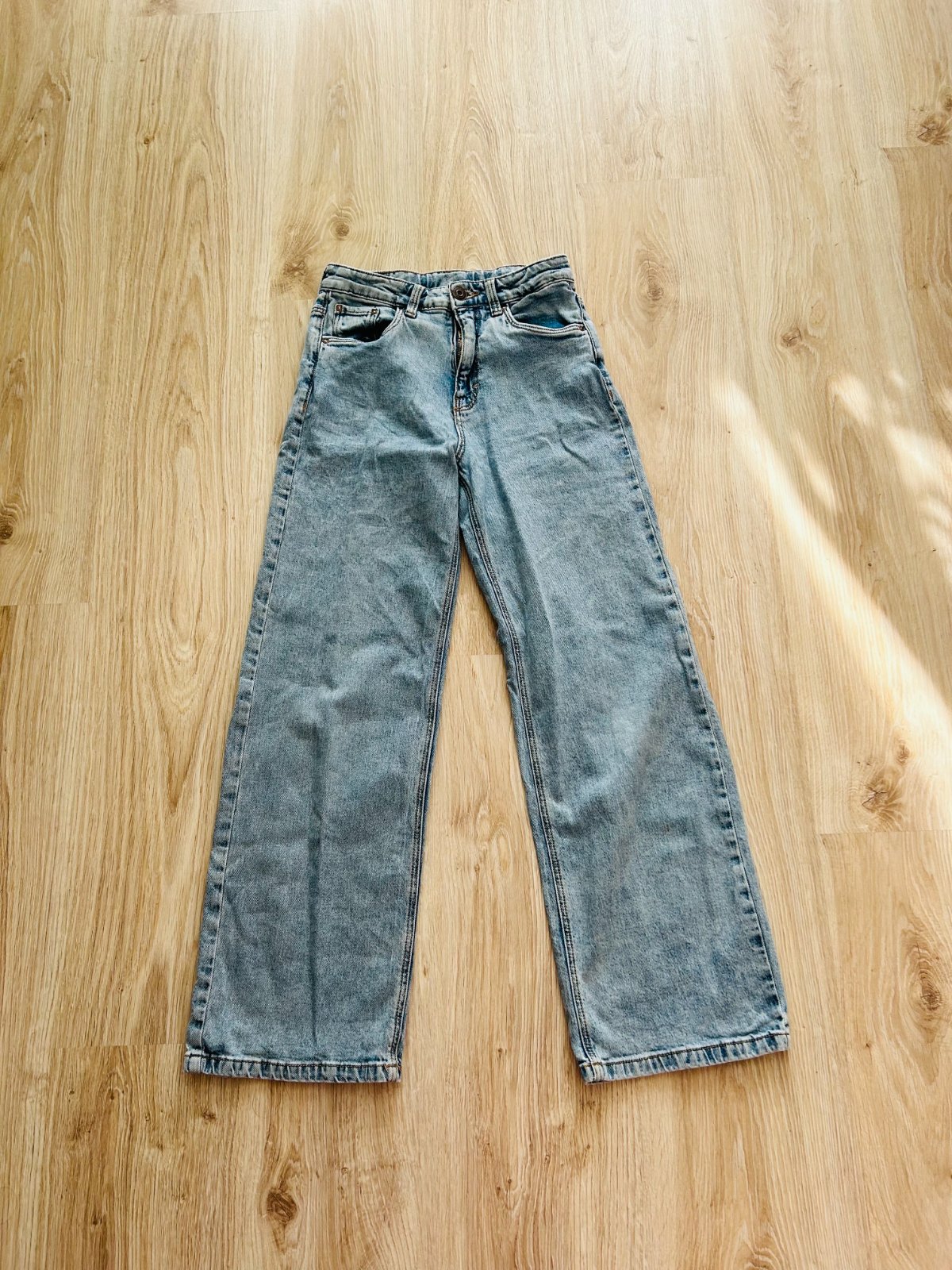 Predám tieto štýlové bavlnené rifle značky C&A vo veľkosti 152. Nosené boli na striedačku s inými nohavicami. Majú nastaviteľný pás, rozšírené konce nohavíc, čo je momentálne veľmi in. Sú vyrobené z bavlny, takže sú príjemné na nosenie. Materiálové zloženie: 99% bavlna, 1% elastan.