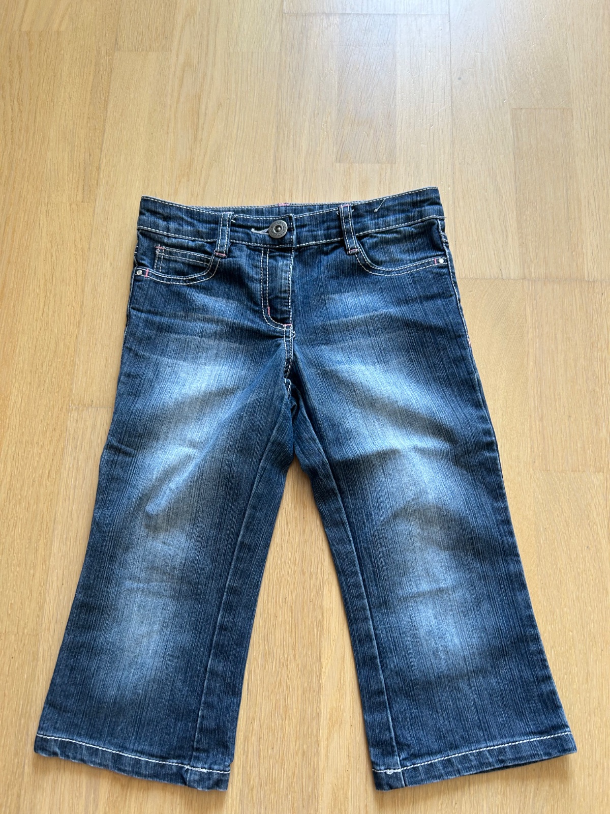 Pohodlné dievčenské rifle bez poškodení v páse na gumičku.