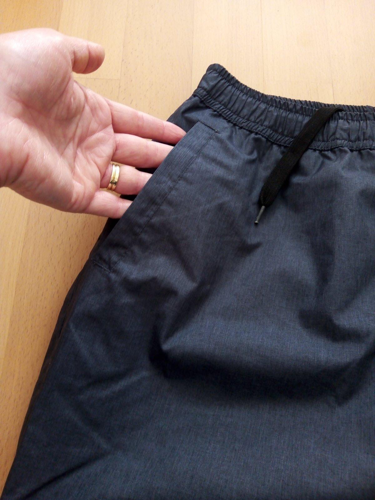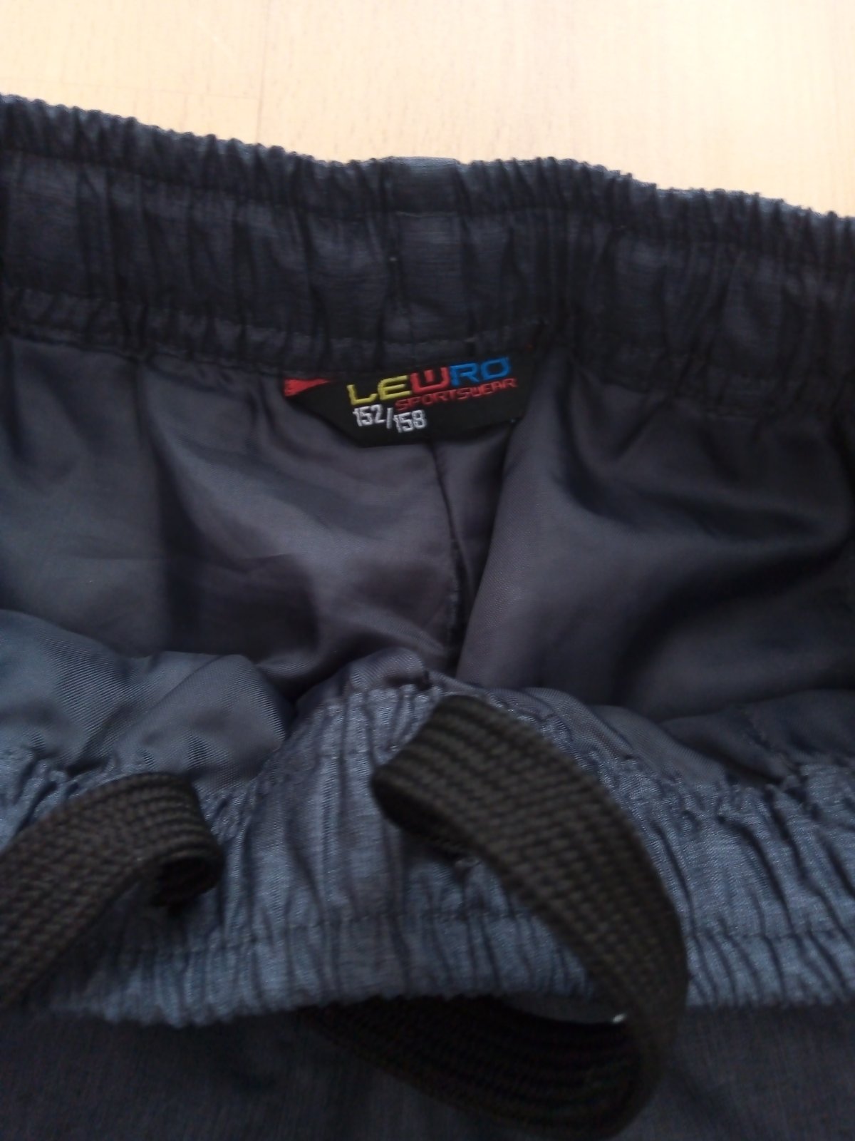 Veľkosť 152/158, bočné vrecka, pás na gumu aj funkčnú šnúrku, reflex.prvky. Farba na prvých dvoch foto zle zachytená.