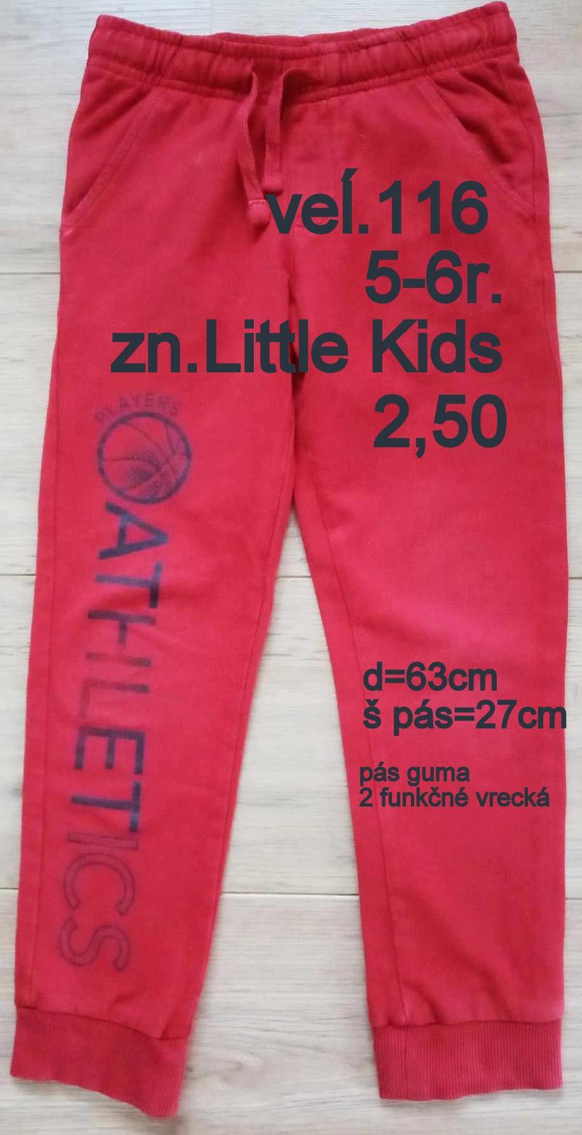 Predám tepláky veĺ.116, zn. Little kids, , pás guma, nápis rozmazany, rozmery a popis na foto