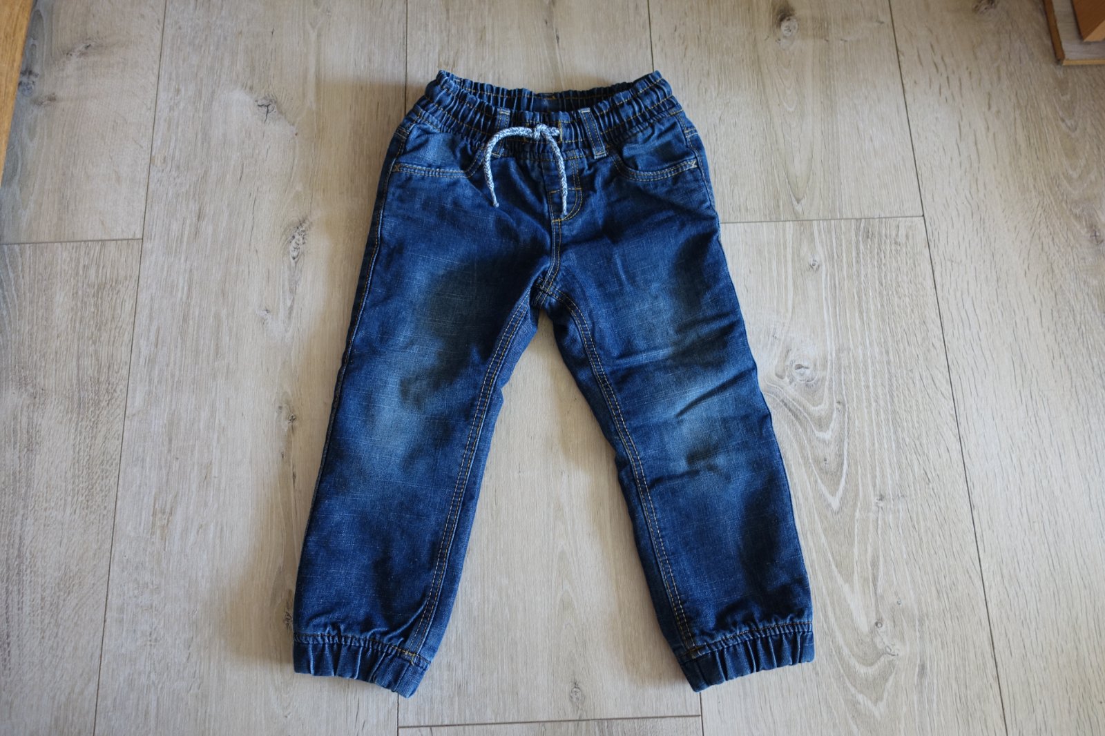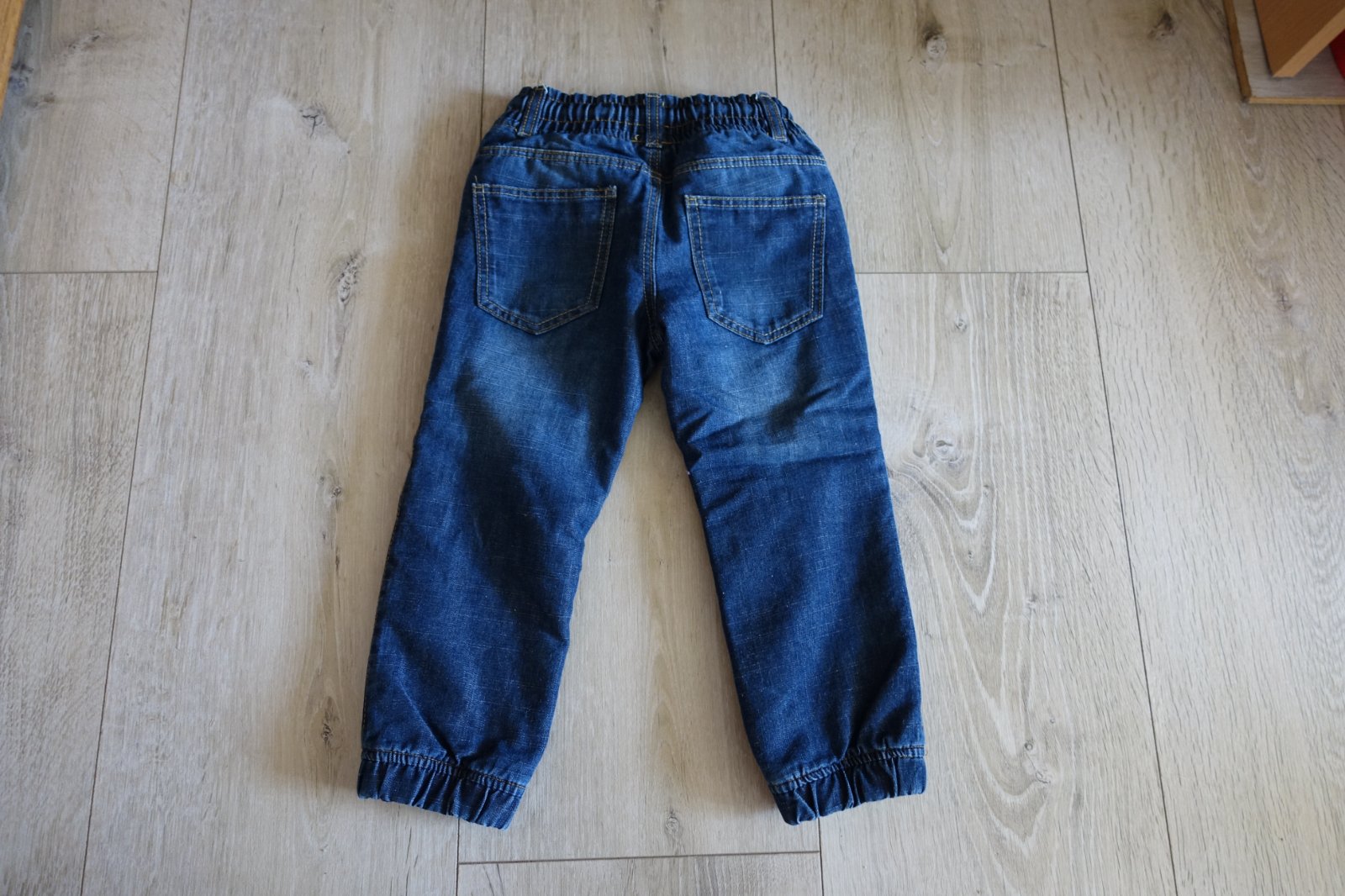 Predám krásne rifličky podteplené fleesom. Sú teplé, mäkké - ako teplákovina a pohodlné na nosenie. Majú vrecká a šnúrka sa dá plne zatiahnuť. Vyšúchané boli takto originál. Boli pár krát nosené na striedačku aj s inými, ale sú v peknom stave. Nemajú fľaky, ani diery, ani žmolky, či iné poškodenia. Máme toho veľa, nestíhali sme nosiť. Celková dĺžka je 56 cm a šírka pásu v kľude je 23 cm. (V08)