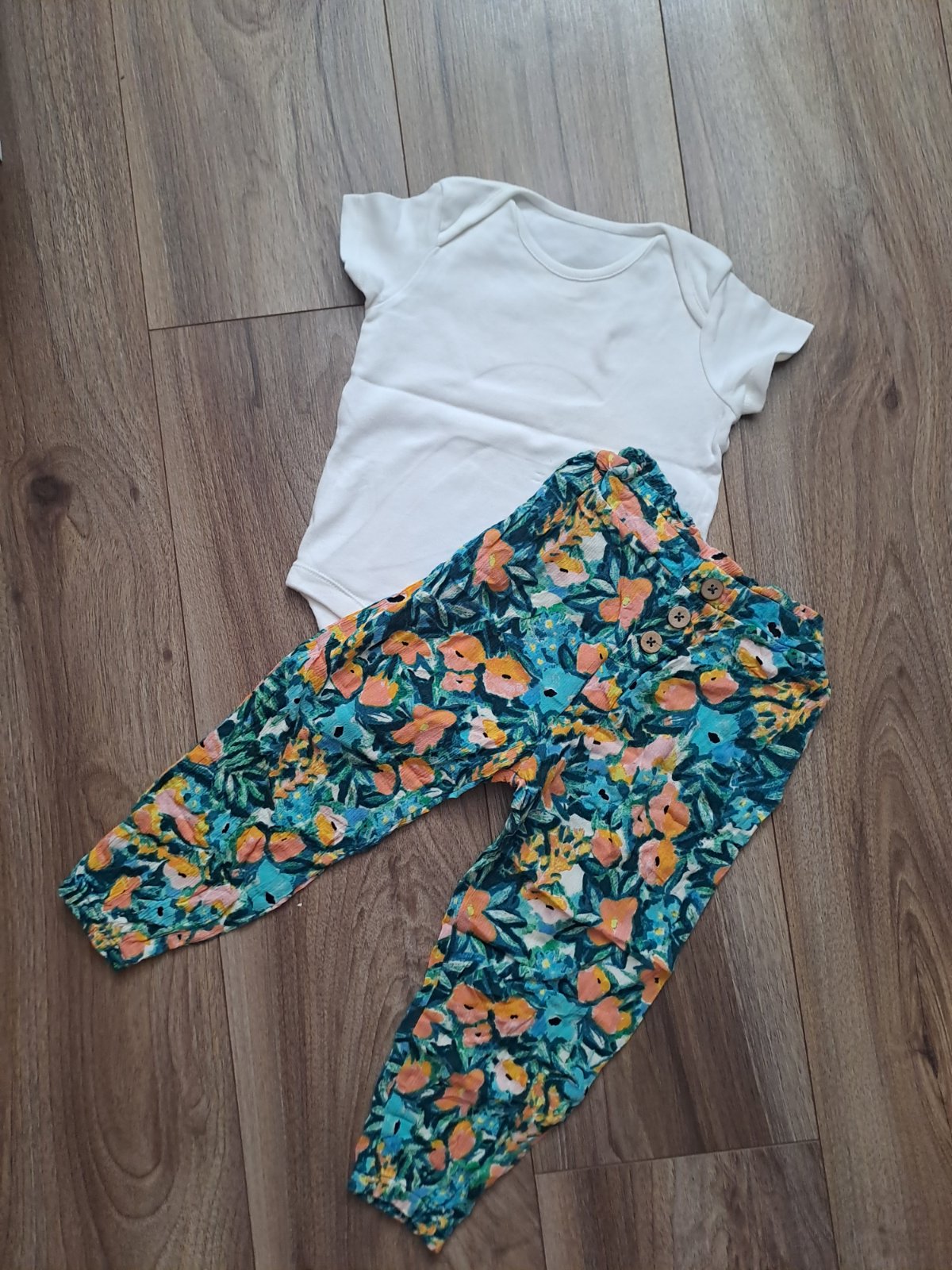Nohavice akoby z rifloviny.Rozmery D: 48cm, pás má regulovateľnú gumičku