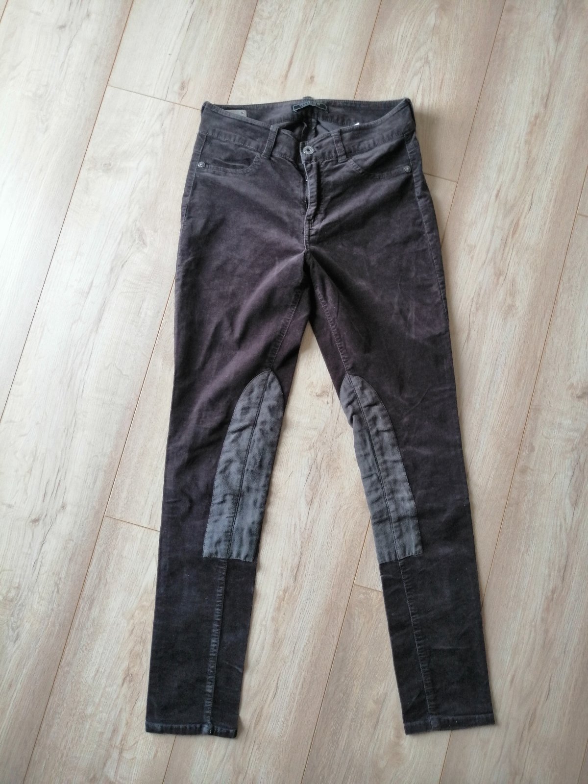 Predám dámske menčestrové nohavice hnedej farby. Veľkosť nohavíc je 27, čo predstavuje tak veľkosť S. Su vhodné skôr na nižšiu postavu. Nohavice sú v oblasti kolien prešívané kožou.