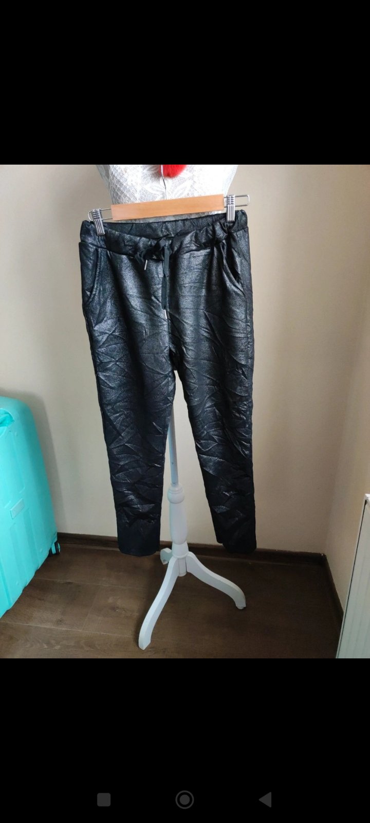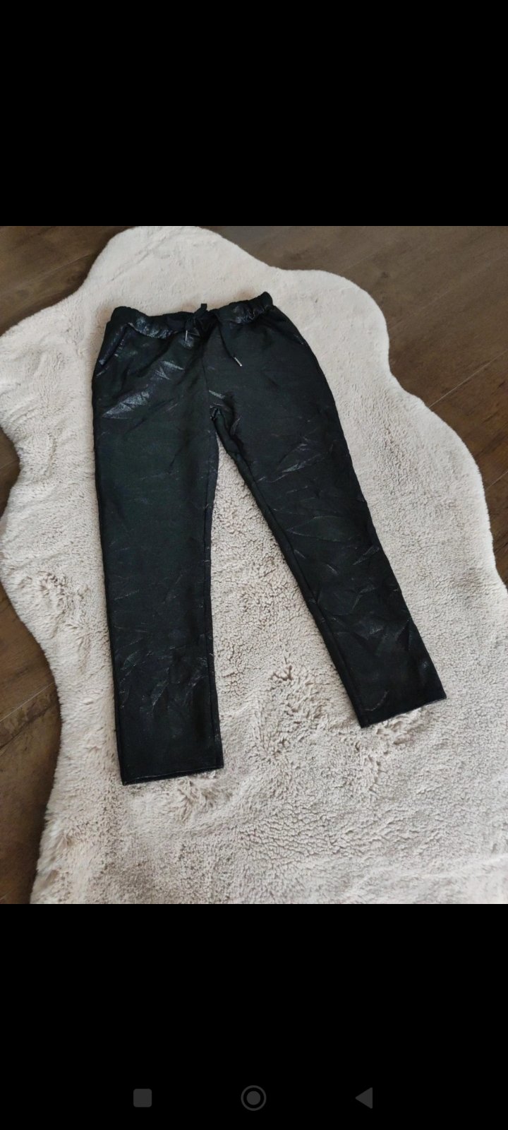 Ponúkam mäkke, elastické nohavice sadnú na S-M.... miery vo fóte... pokrčeny štýl...pás sa natiahne až do 50×2.... nenosené.Italy moda