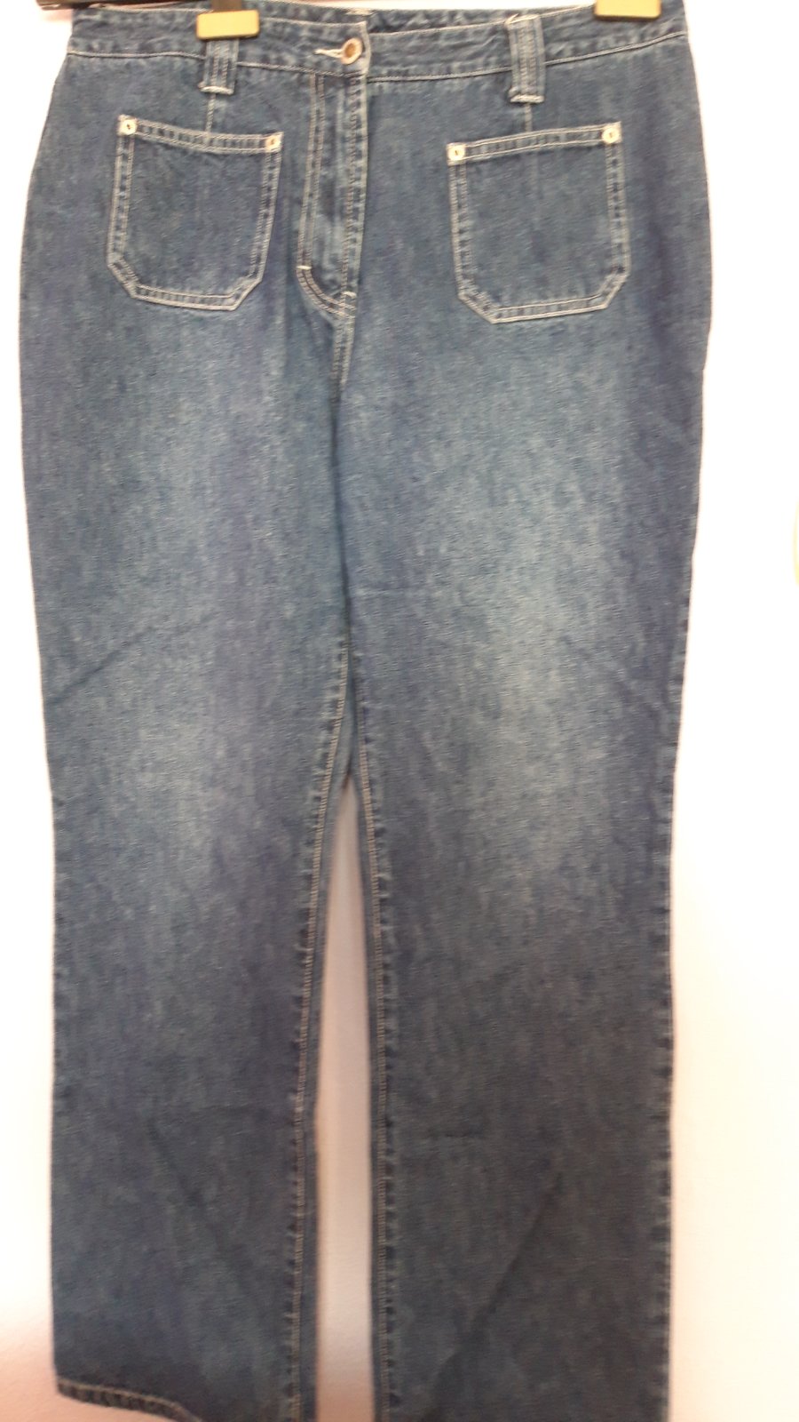 Málo nosené dámske rifle s koženou aplikáciou okolo vreciek.