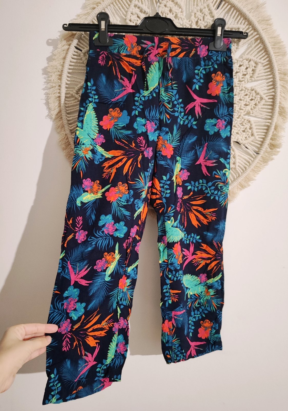pekné nohavice bez poškodení, super stav, v páse guma + regulovanie šírky. Našité srdiečka sú od novoty, neslúžia ako záplata.