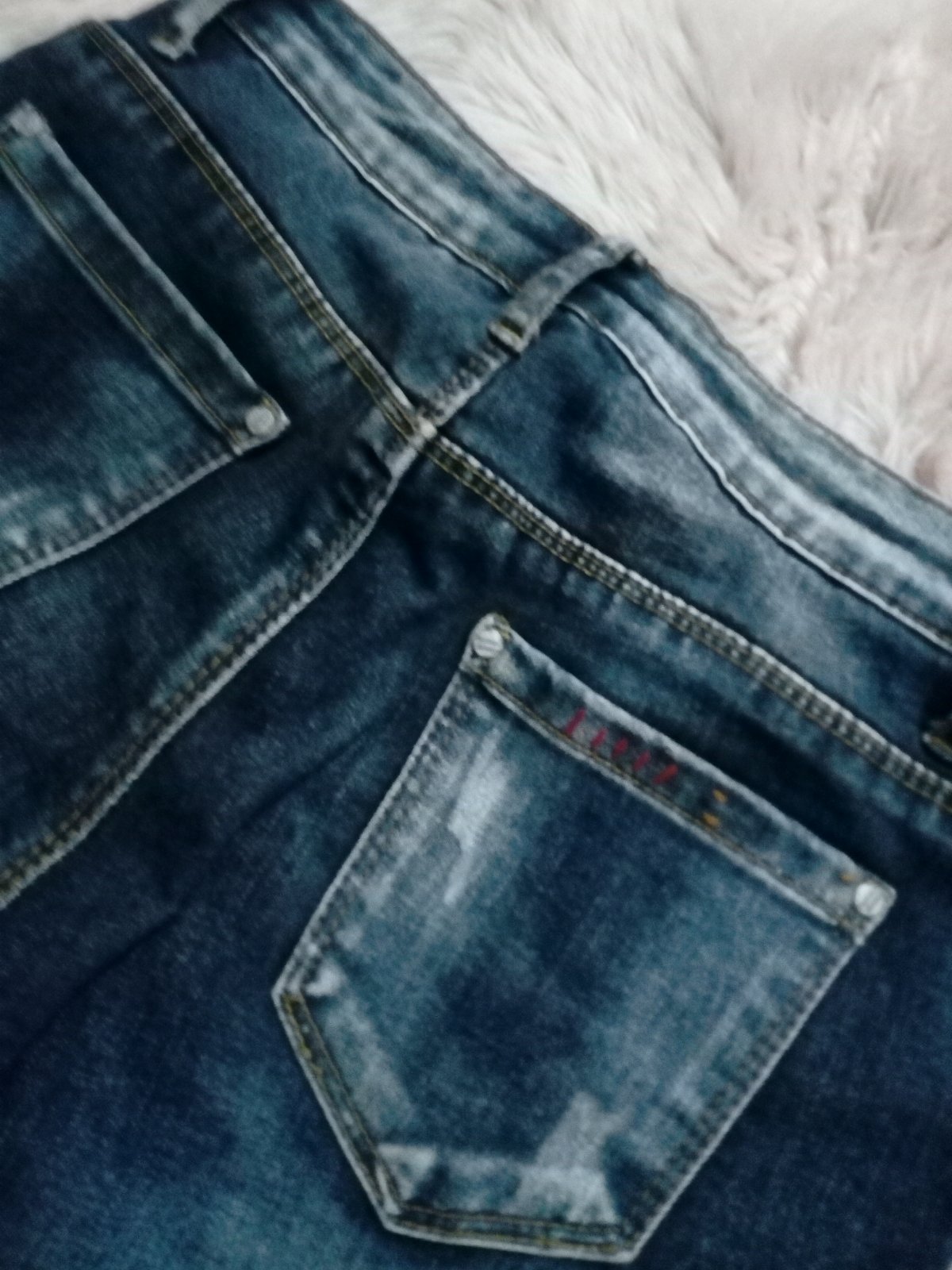 Nosila som ich podhnute, čiže sa na spodku farba osuchala vid foto. Skôr vhodné pre niekoho kto by si ich podsil. Dlzka podhnutych 95cm Dlzka celková 103 cm Pas 37cm