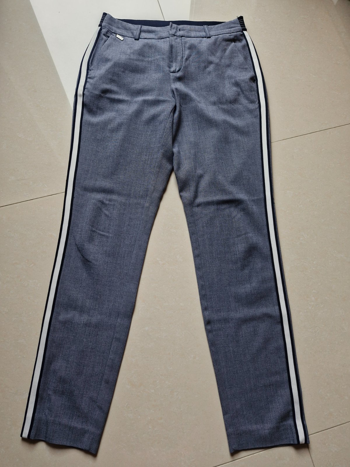 Kárované nohavice, veľmi dobrá kvalita materiálu, veľmi dobre sa nosia, sú nadčasové, nestarnú, keďže ide o značku street one, myslím, že je to číslo 38, v prípade záujmu premeriam