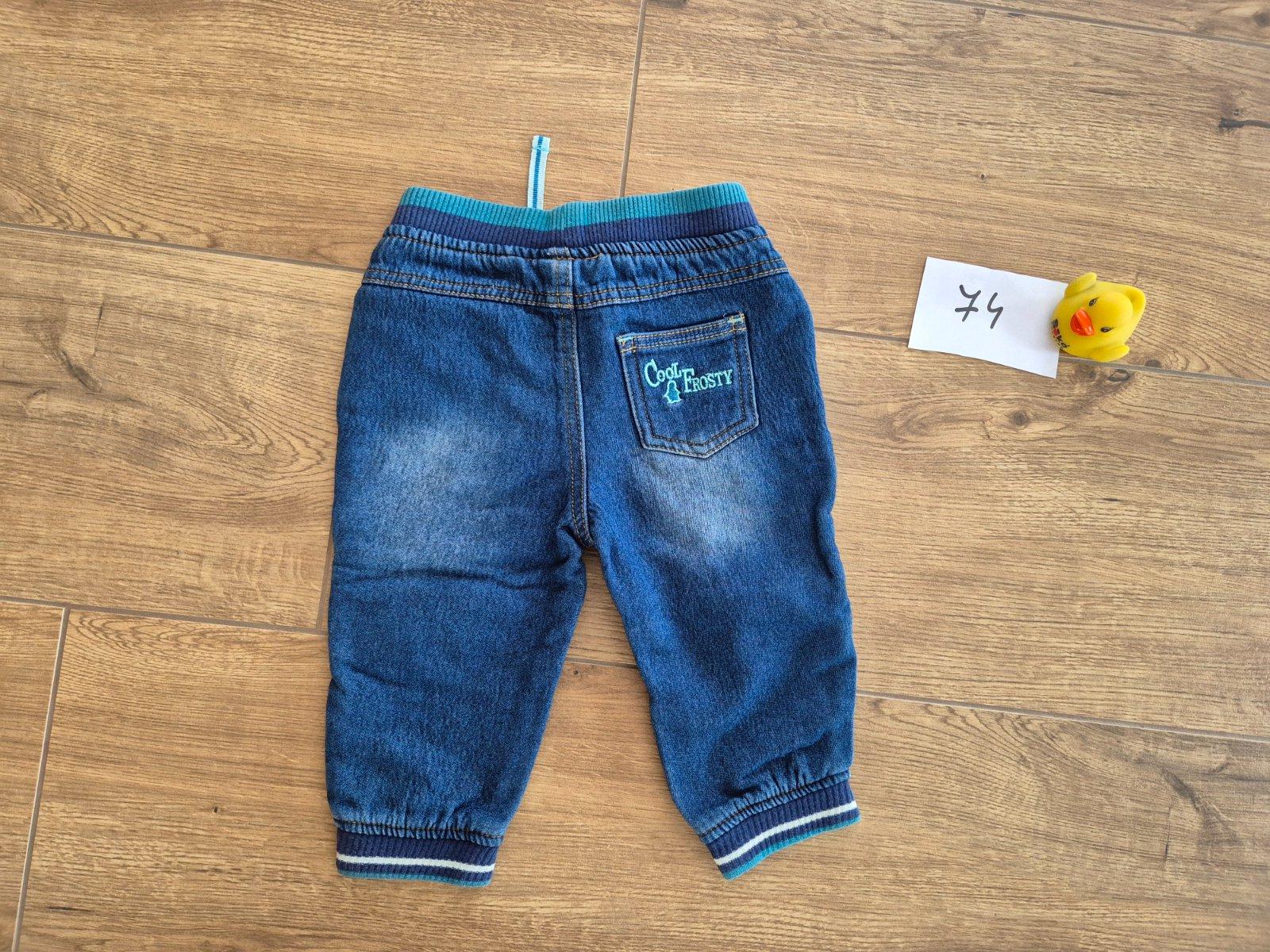 Zateplené (podšité) rifle v top stave..veľkosť 74 (6-9 mes).. regulovateľný pás (viď.foto)