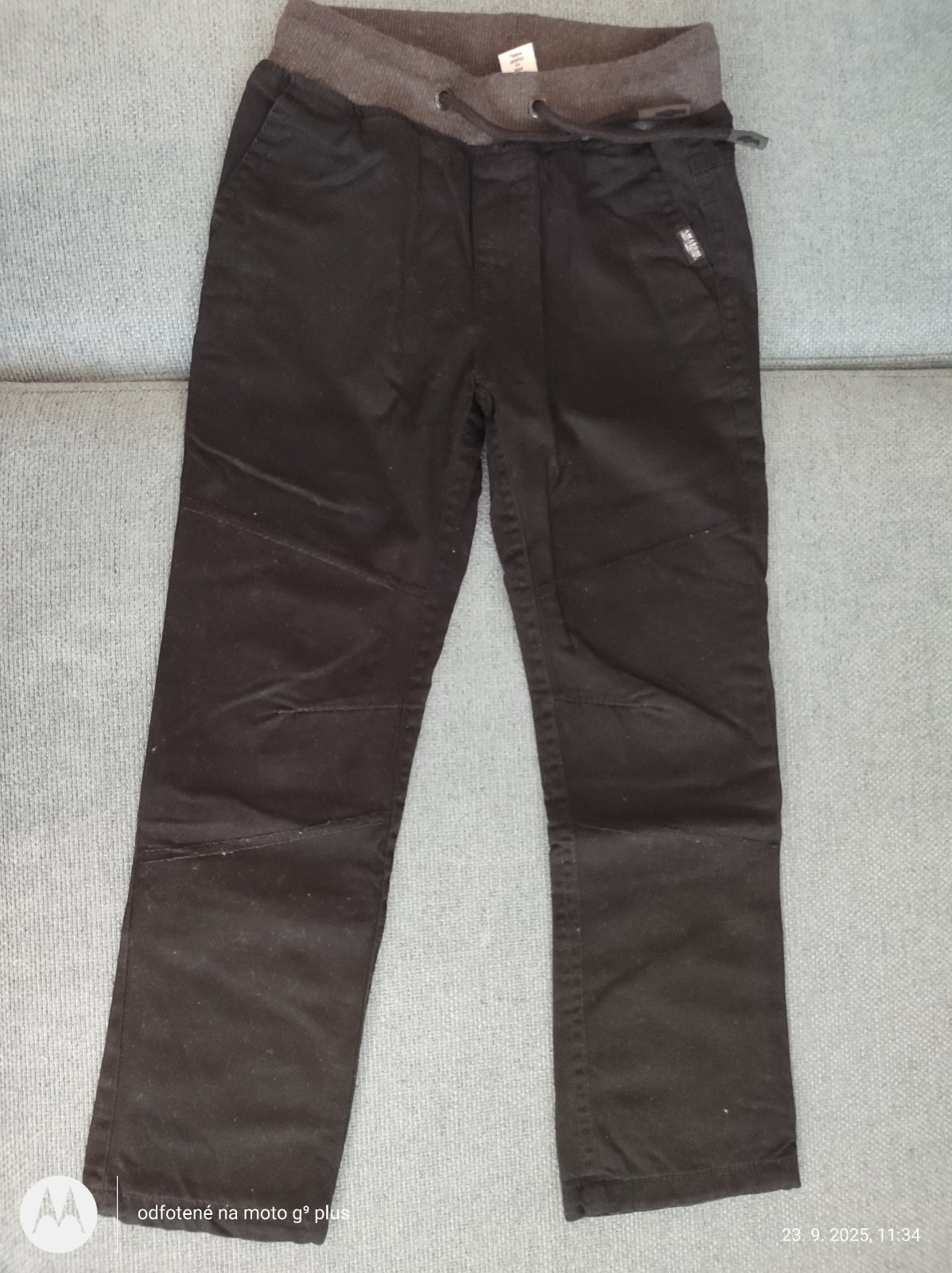 Chlapcenske nohavice velkost 116, sedomodra farba, pas na gumicku + dotahovanie snurkou.