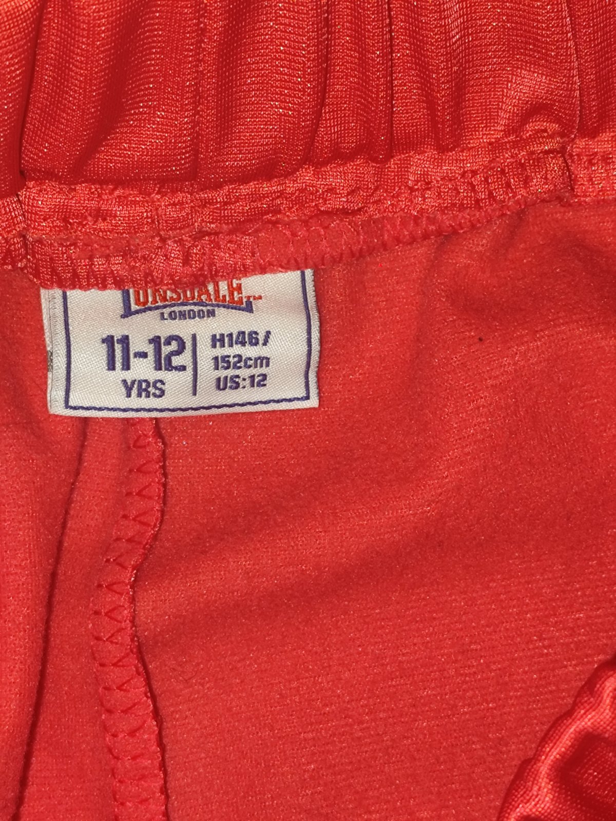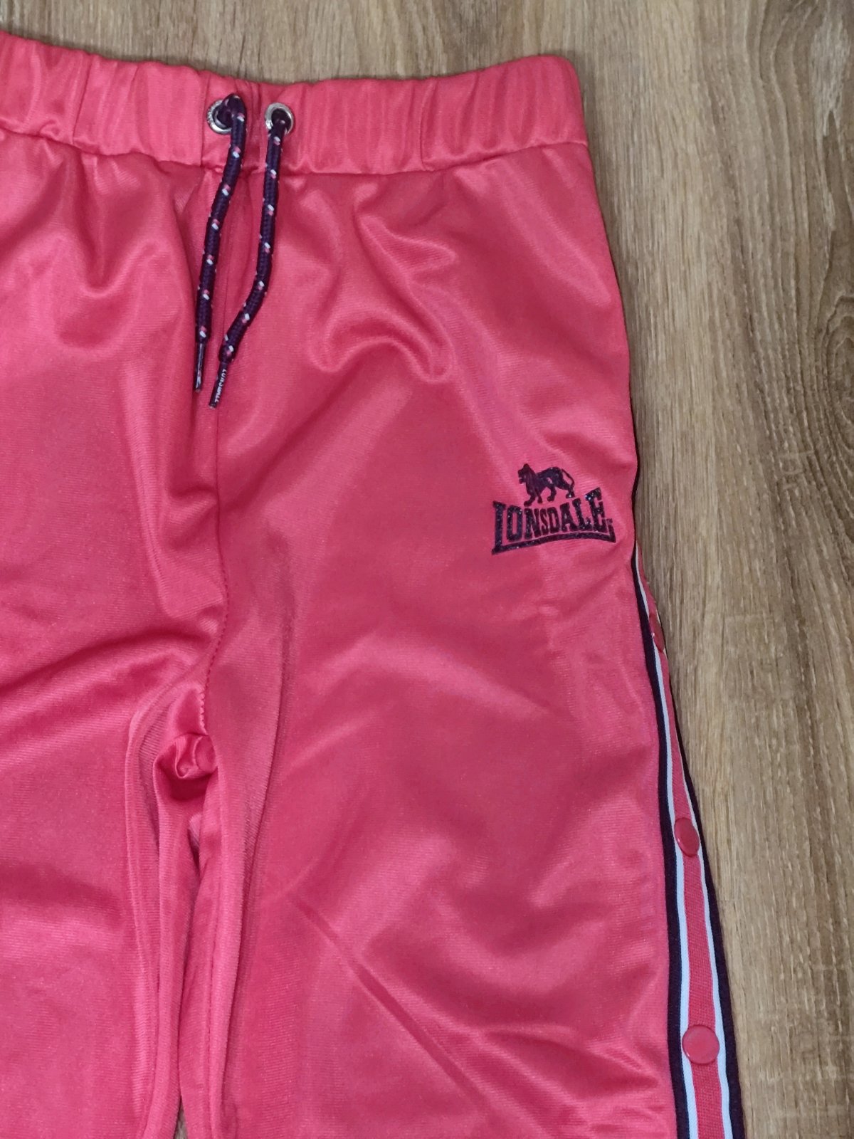 Nohavice Lonsdale vo veľmi dobrom stave, vrecká, s gombíkmi po bokoch, v páse pružná guma a šnúrka. Veľkosť uvedená 146/152.
