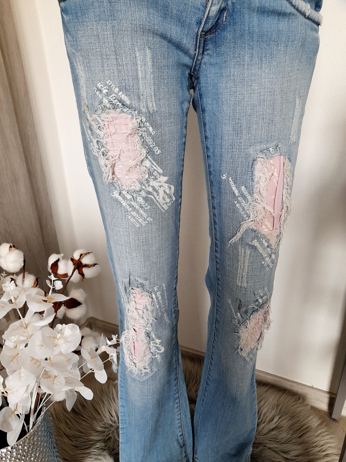 nevymieňam!!nosené,hrubšie,pevnejšia riflovina,dĺžka 100cm,pás 2 x 33cm,boky 2 x 42cm,predný sed 17cm,zadný sed 25cm,spodok trošku akoby ošúchaný,nič hrozné,viď foto....kuk aj na iné moje inzeráty