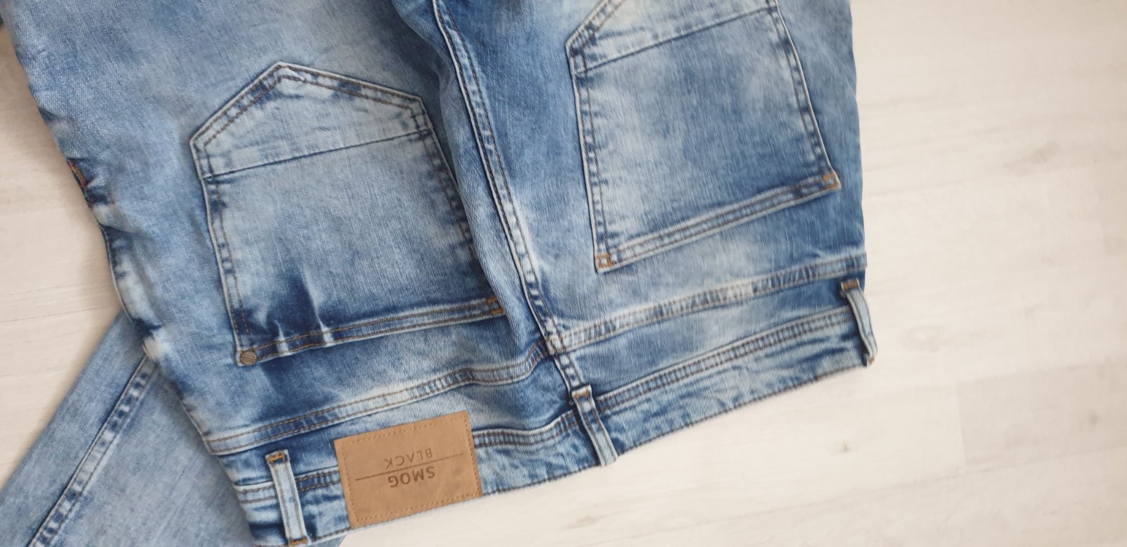 Predam damske rifle, vel. 32,zn.G.Cause Jeans. Material 95% bavlna, 5% elastan. Zdobene na vreckach tyrkysovymi kamienkami + tyrkys.gombik. Rifle su nove, 1x nosene. Vpredu vysuchany vzhlad. Dlzka...