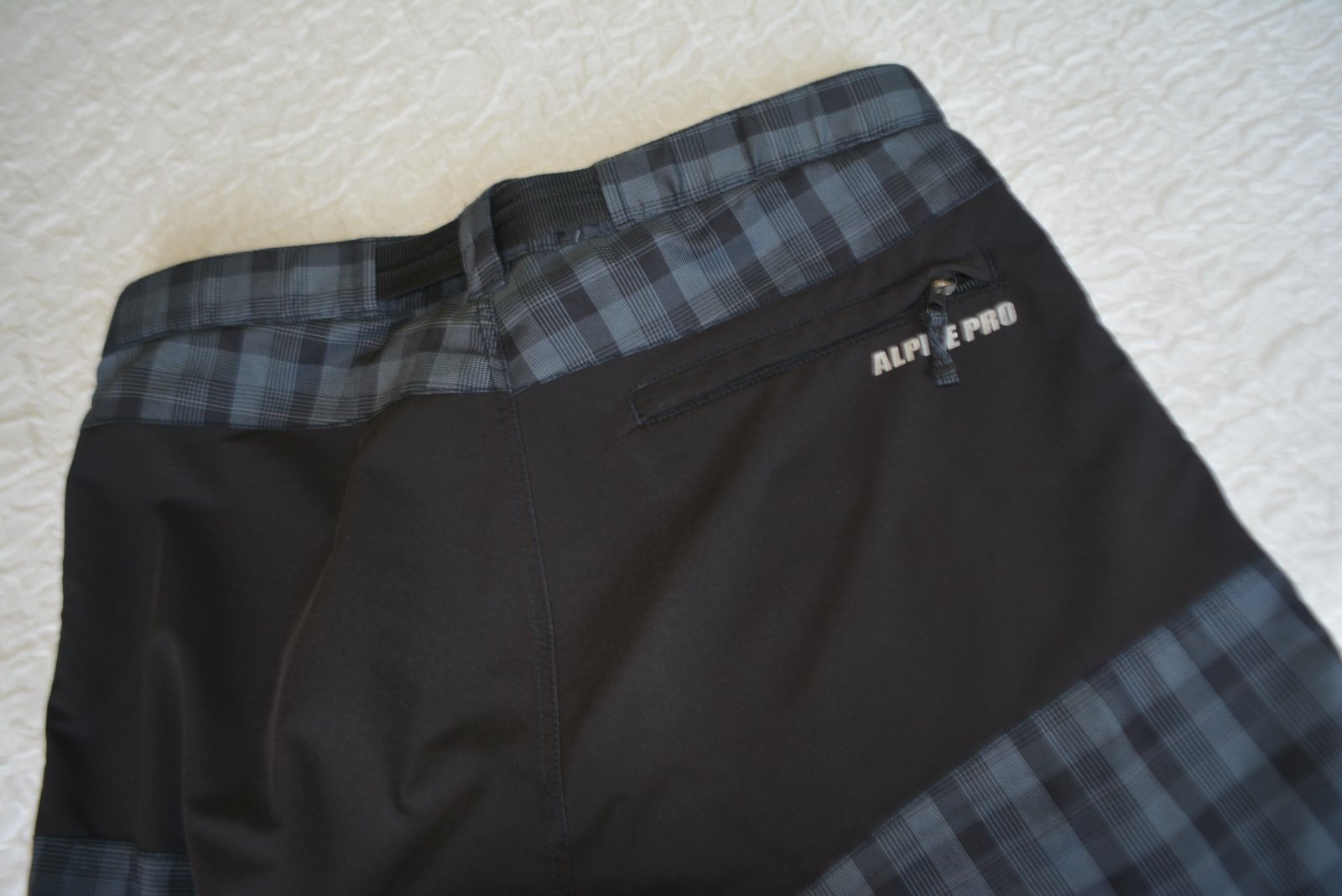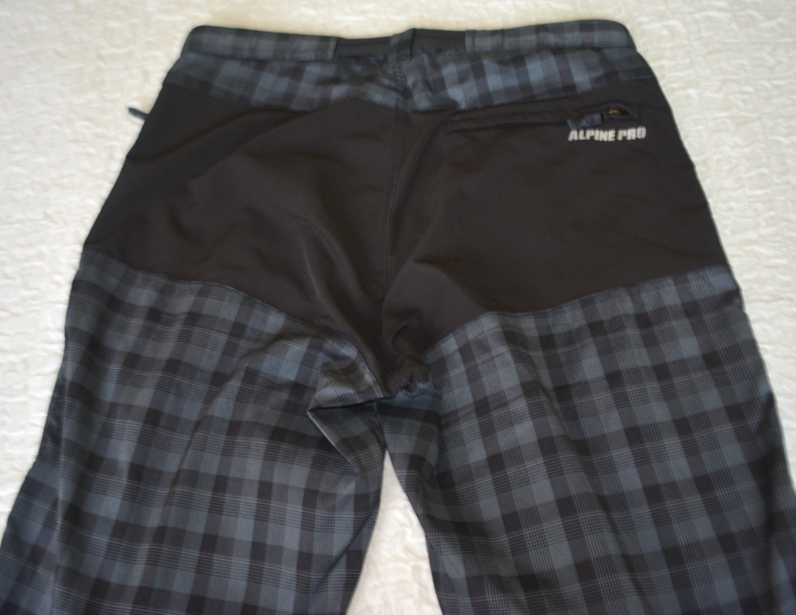 Pánske soft shellové turistické nohavice zn. Alpine Pro, veľ. L, rozmery: bočná dĺžka 112cm, od rozkroku 87cm, pás 2x45cm.