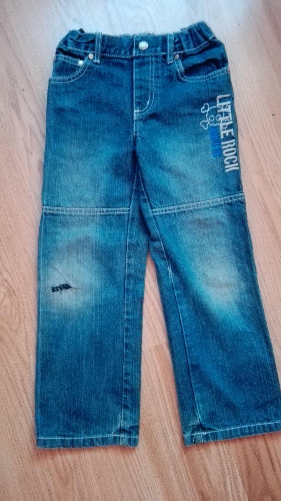 Rifle Dopodopo. Vel.122. /6-7r./. Dlzka: 71cm. Na kolene je zasita dierka. Rifle nemaju zips. Je tam len okrasny gombik, obliekaju sa ako teplaky. V pase je nastavitelna guma. Neni su preprate, boli par krat oblecene. Cena:1.50€.Uprednostnujem osobny odber. V bazariku mam vela veci 1x oblecene, alebo len vyskusane. Platba vopred na ucet, alebo osobny odber ZA.