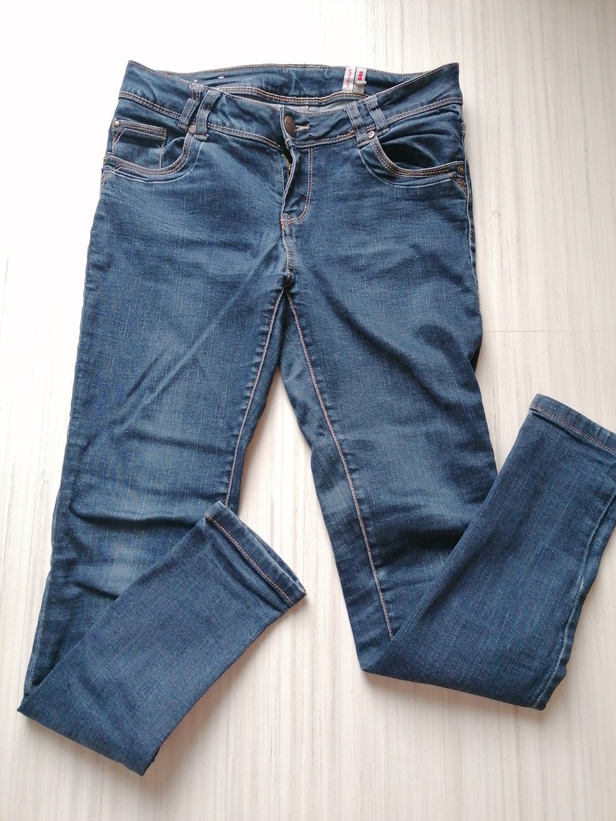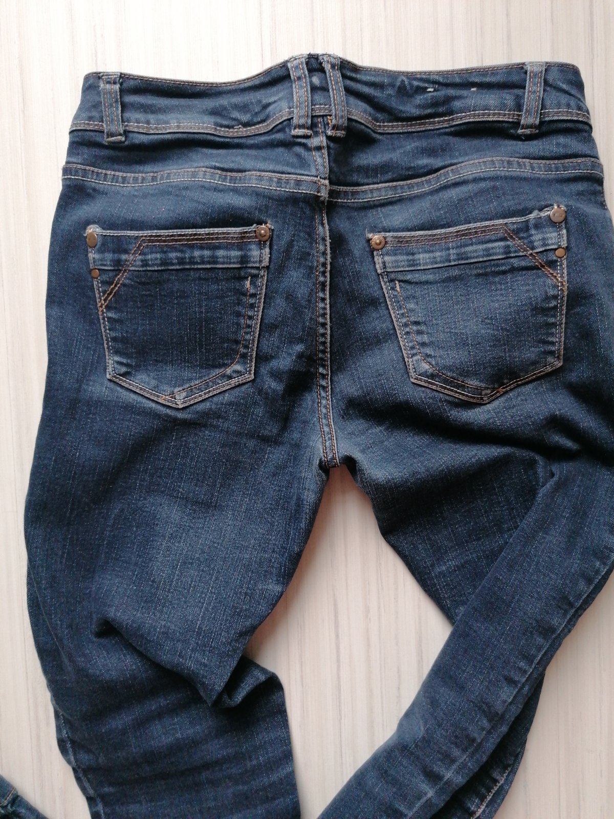 Nenosene rifle na nižšiu postavu rovného strihu s elastanom. Su velmi pohodlne. Zn. John Baner objednane v Bonprixe. Dl. 97 cm, od rozkroku 74 cm, pas je znížený 74-75 cm.