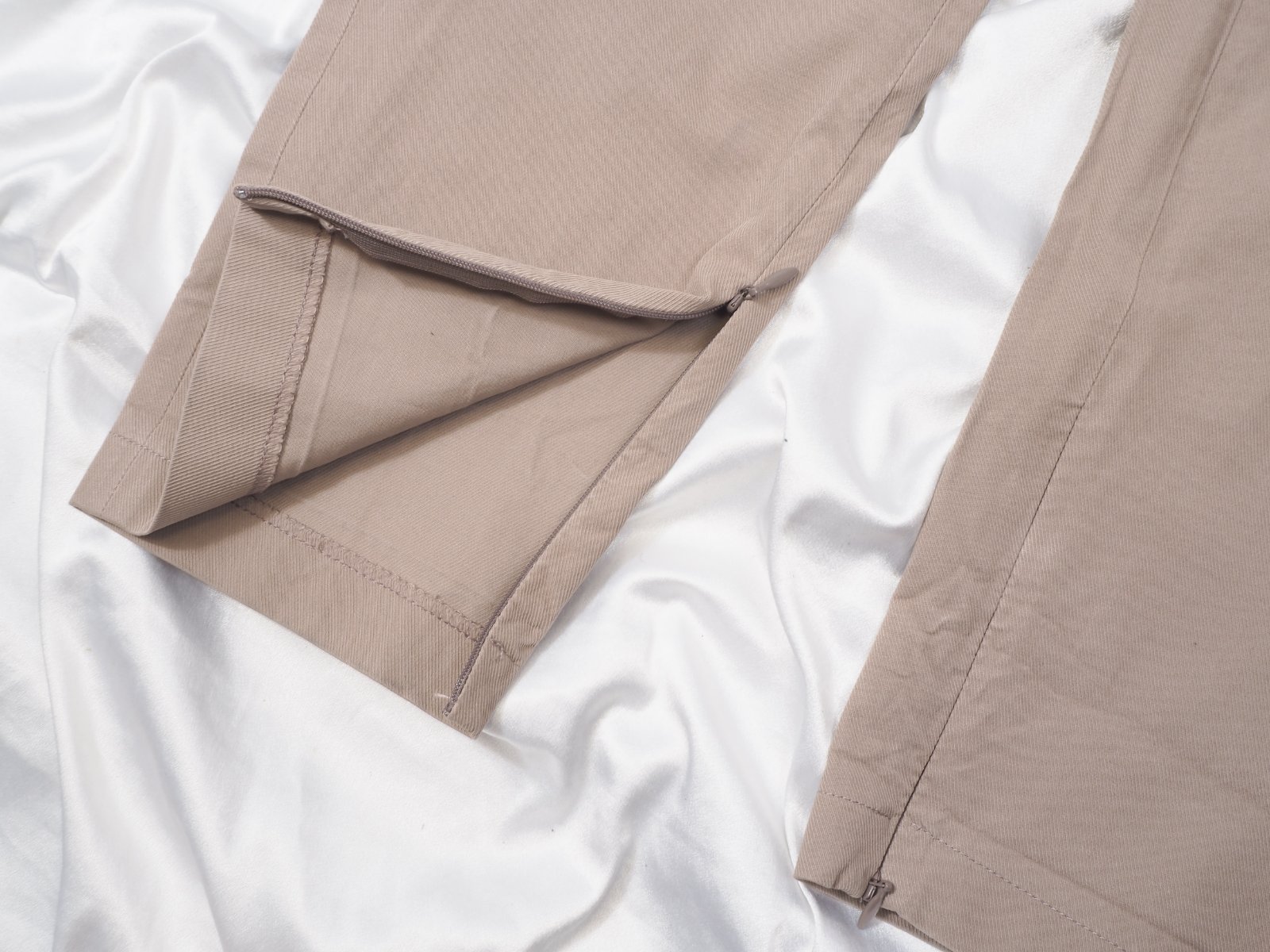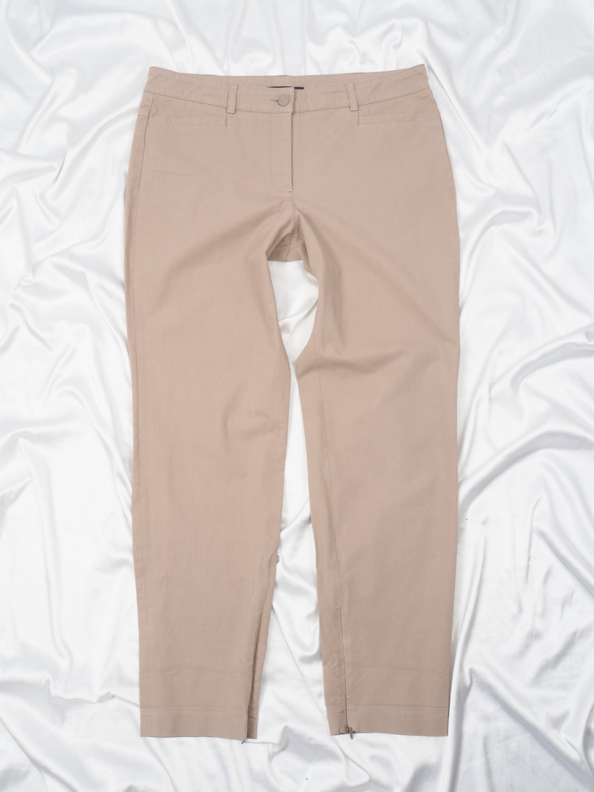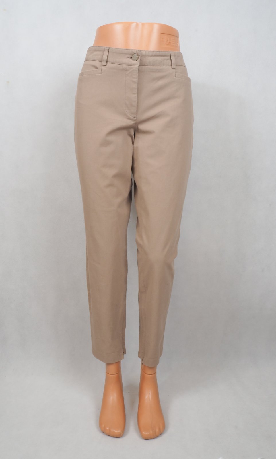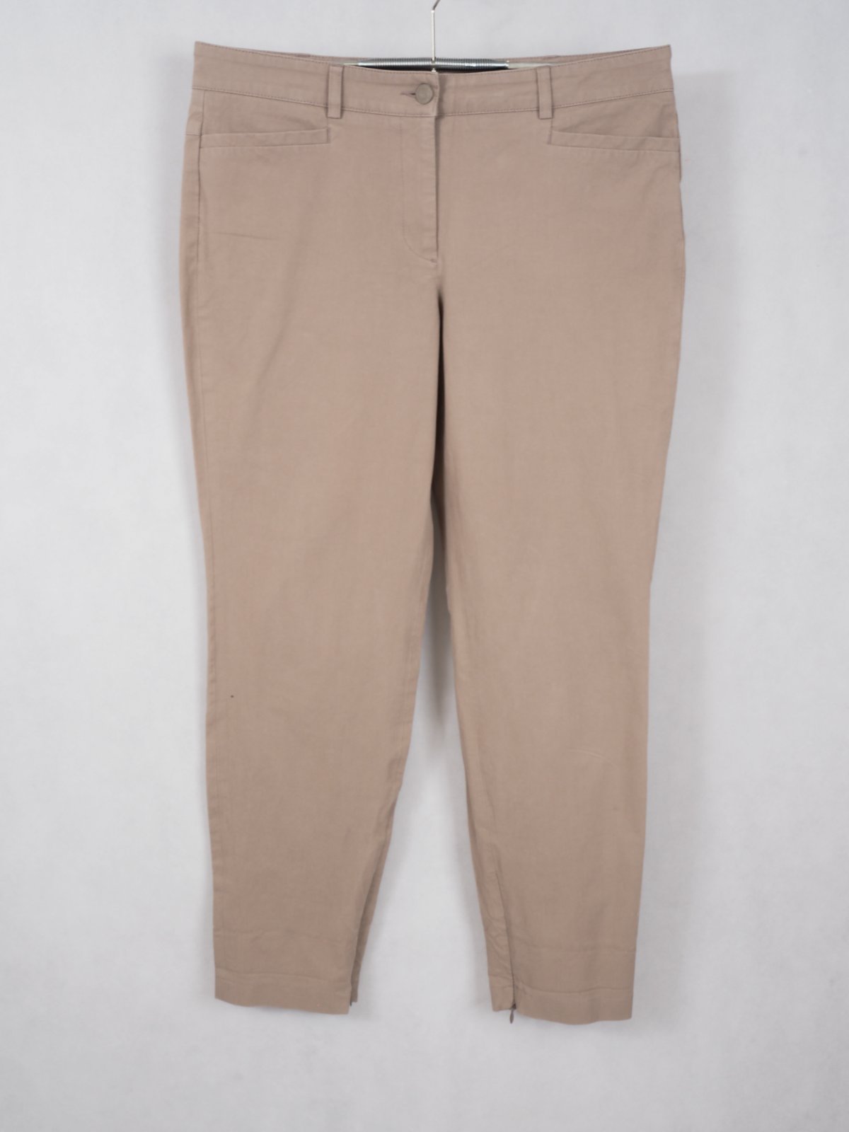 Kvalitné béžové nohavice, zapínanie na zips a gombík, mateirál 98% bavlna, 2% elastan, vnútorné zipsy na dole na nohách, super stav.