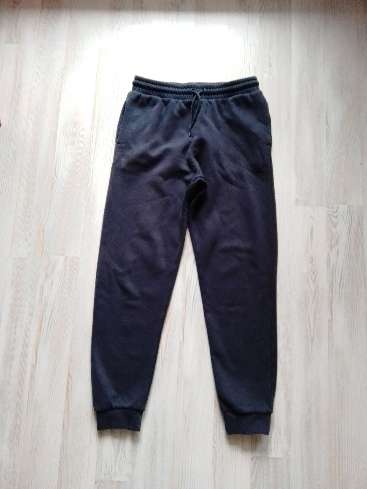 Chlapčenské bavlnené tepláky od F&F, v tmavosivej farbe, v páse guma + šnúrka, dve funkčné bočné vrecká a dolu okolo nôh gumičky. Veľ. 170 (14-15 rokov). Rozmery : - dĺžka : 93 cm - obvod pása v ne...