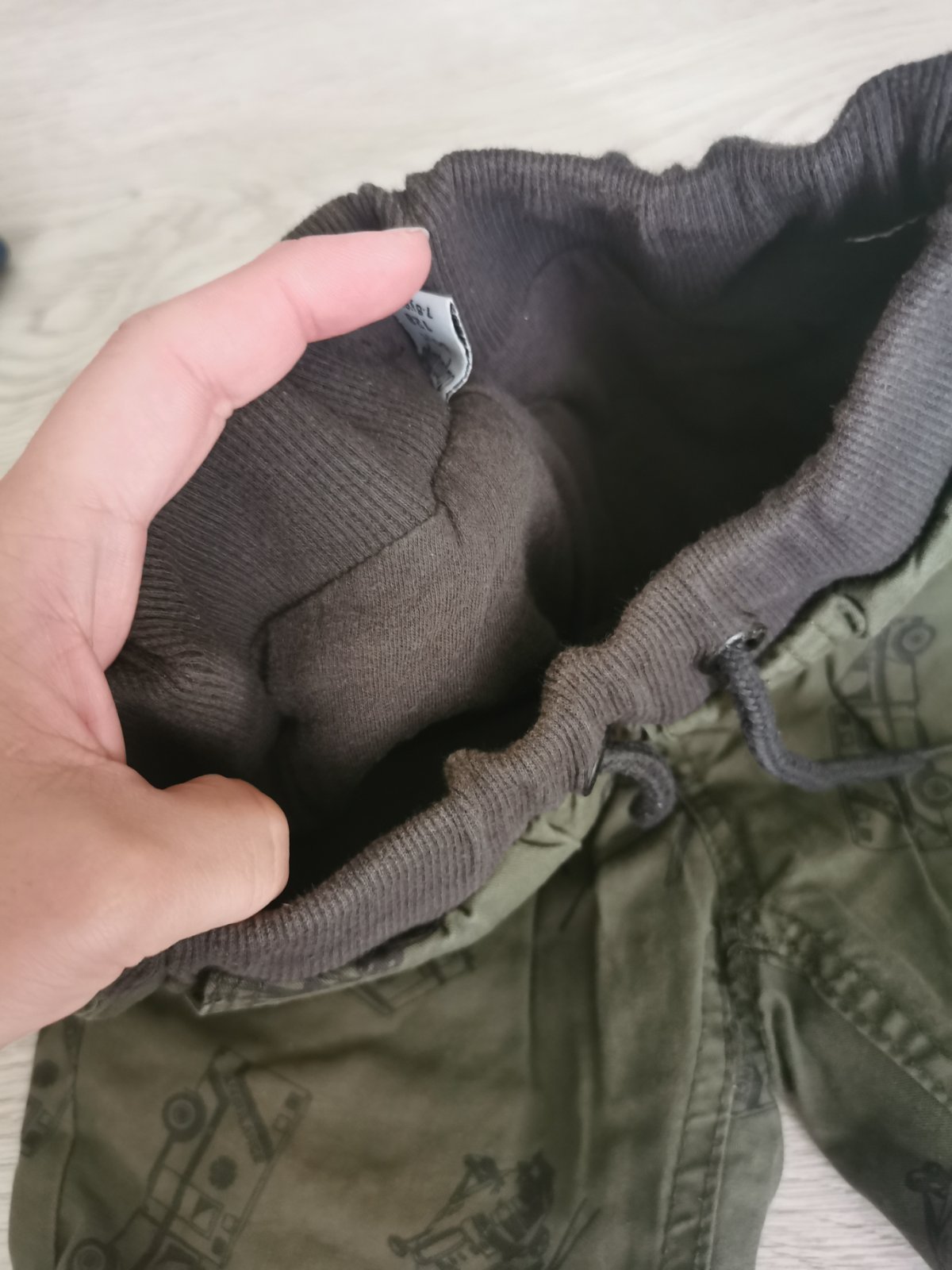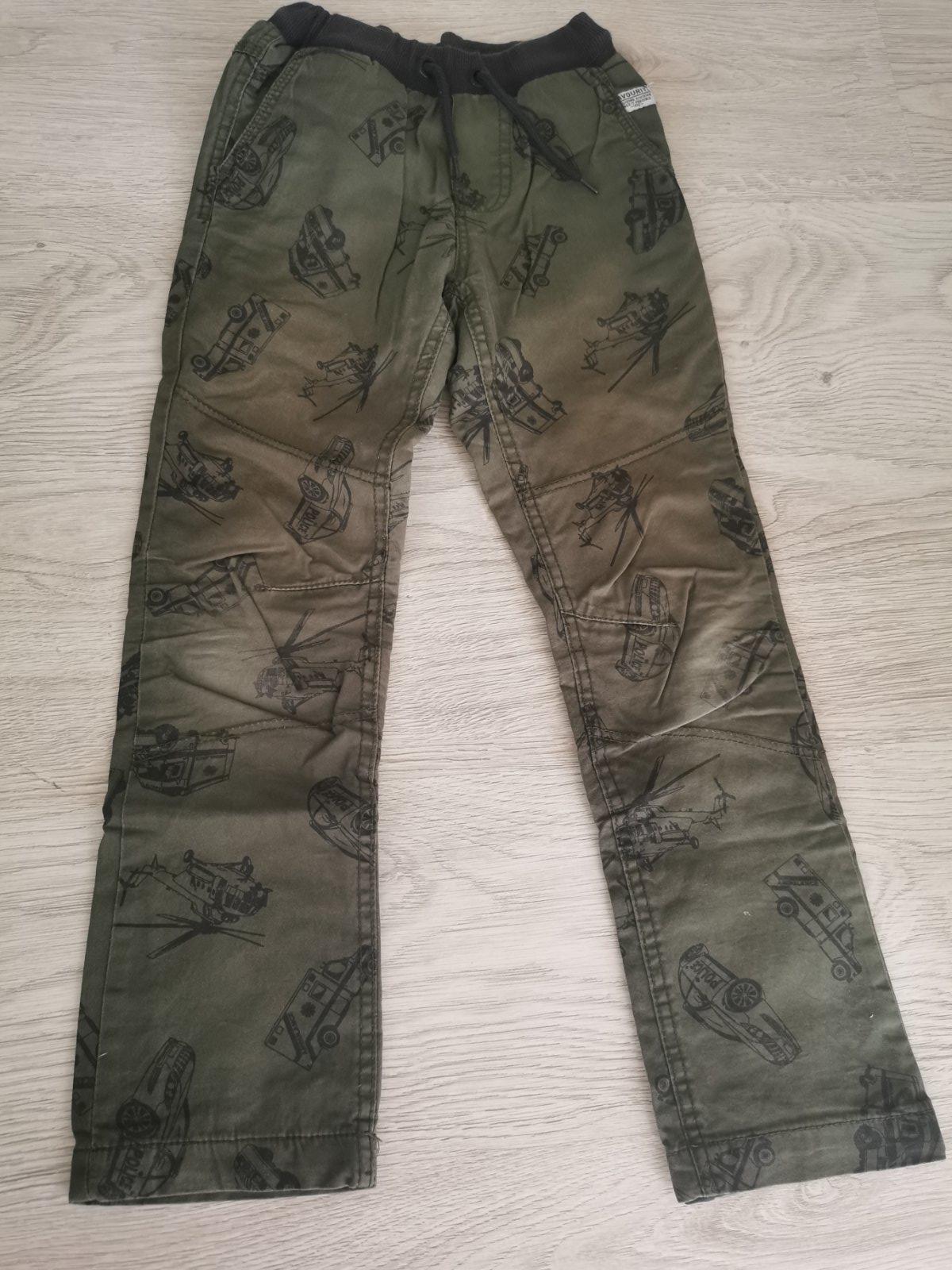 Podšité nohavice v dobrom nosenom stave, na kolenách trochu svetlejšia farba, viď foto,nič hrozné, veľkosť 7-8rokov. V páse je našitá gumička.