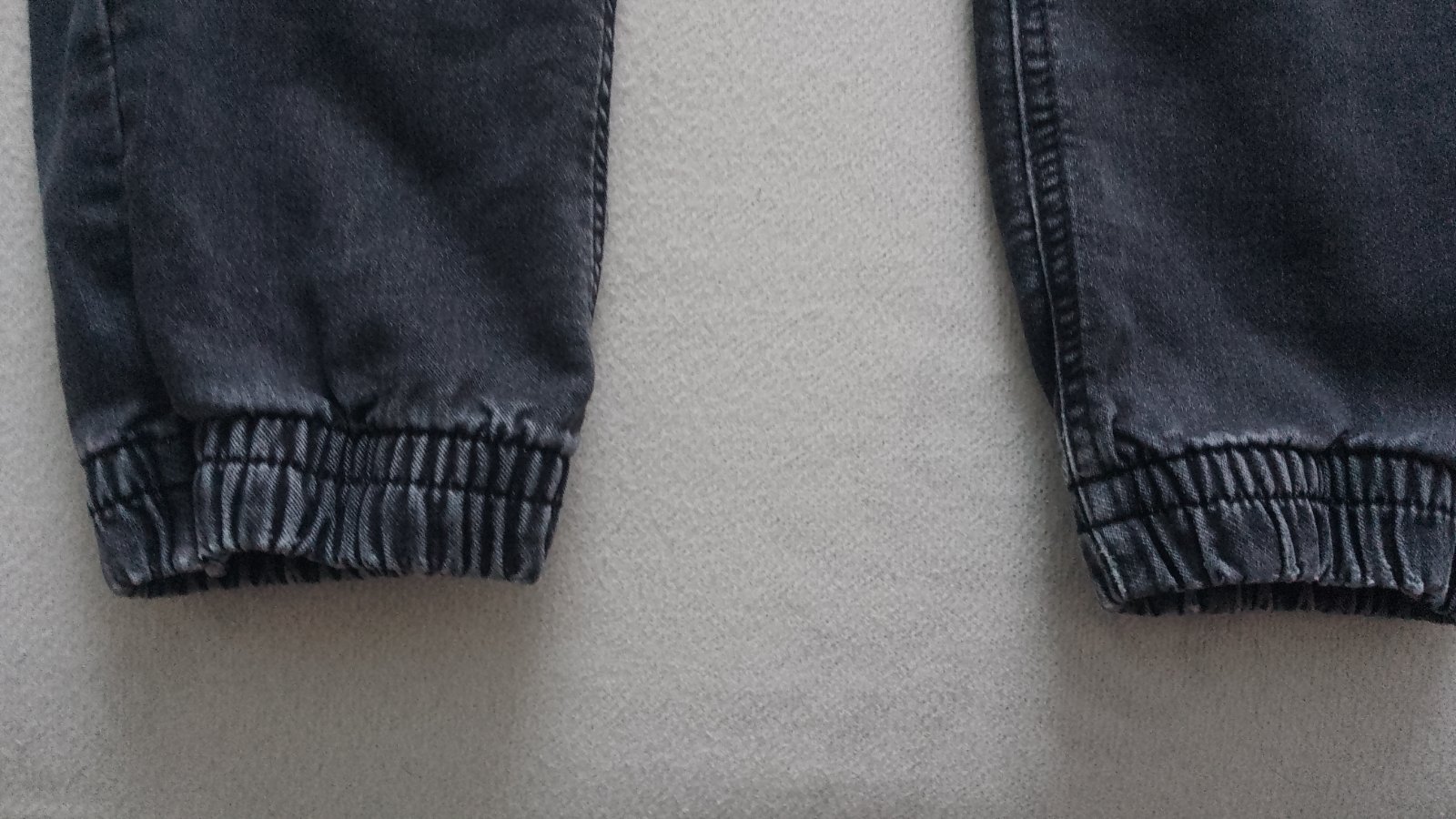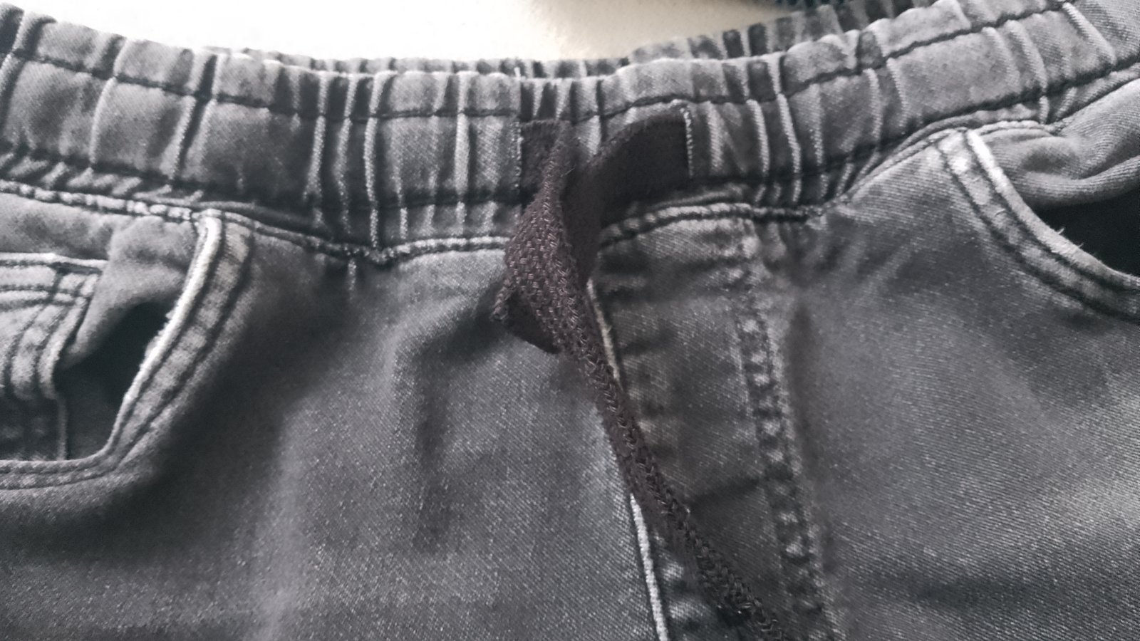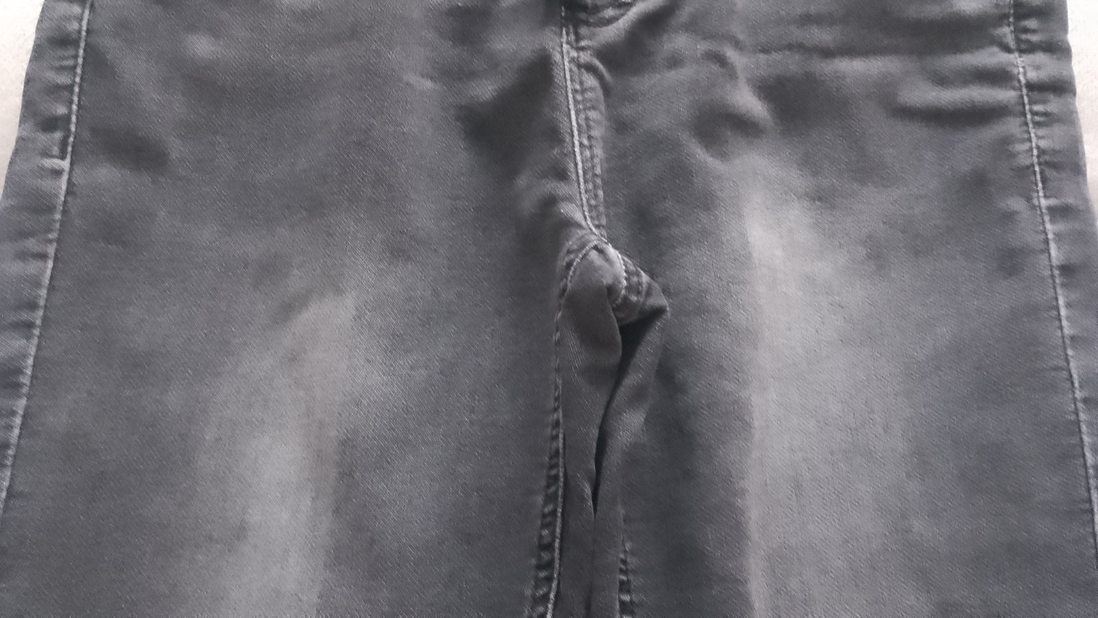 V zachovalom stave, dĺžka 99 CM, pás 36/46 CM, elastický materiál, na spodku nohavíc a v okolí vreciek je jemné predratie materiálu, viď foto.