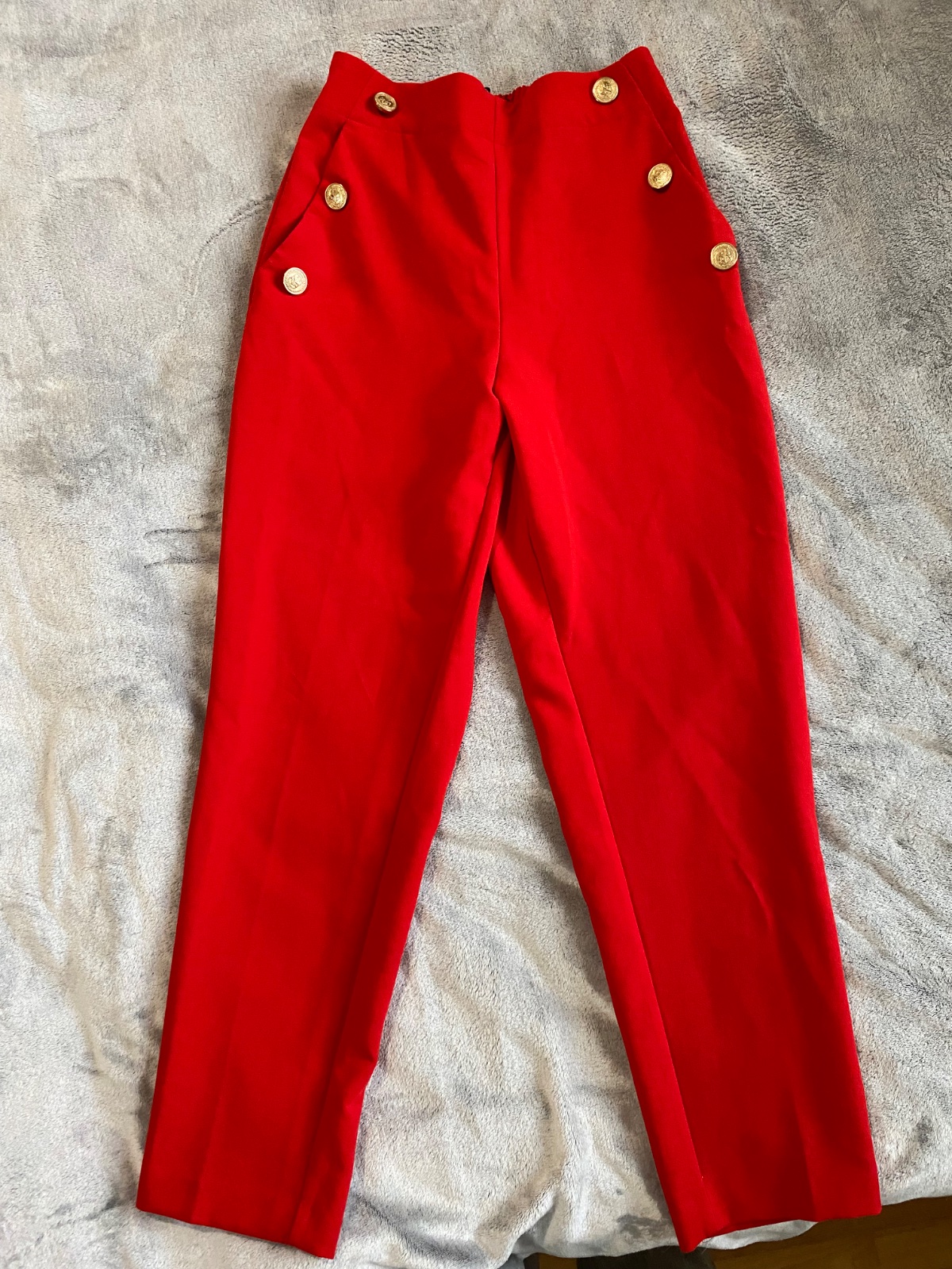Prijemne letne nohavice, velkost XS ale sedia aj na S, v super stave akurat vpredu maju male zatiahnutie a ciarku