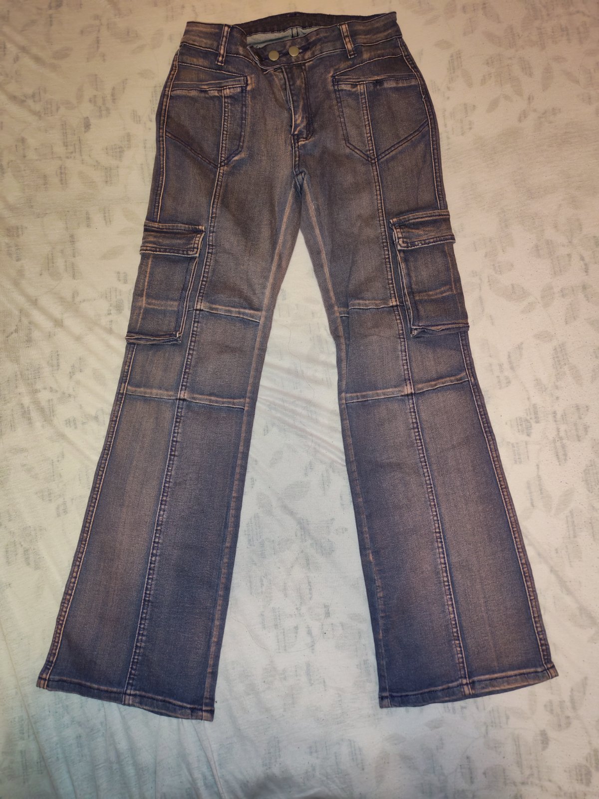 Farba fialová denim, nenosené nové, dlžka 99cm, pas 36cm