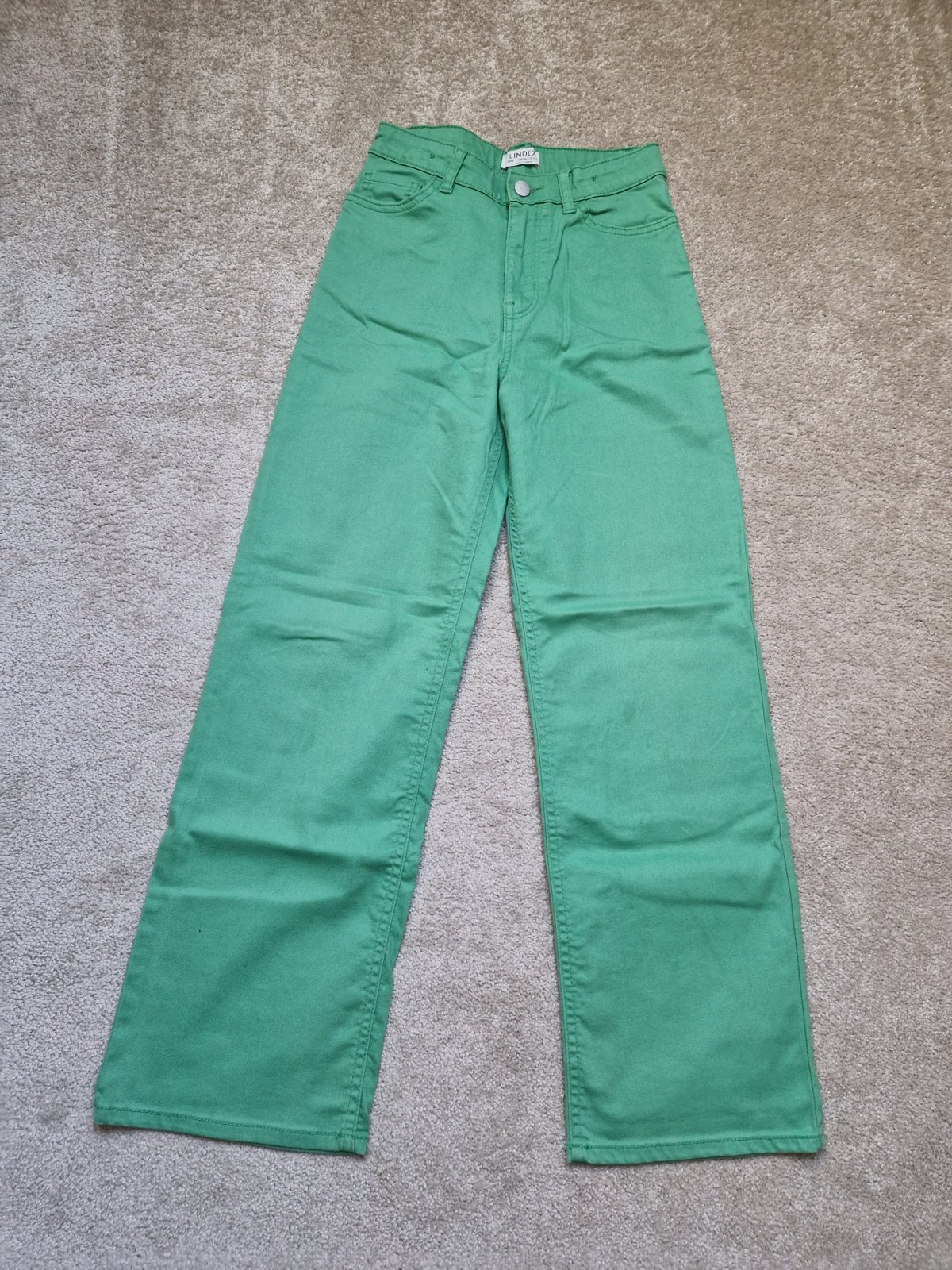 Zelené Lindex, dĺžky 97/67cm, vyšší sed, pás 60cm, regulovateľný, nepoužitý. Su trosku vacsie ako sive. Rovný strih, dcéra mala 2x, žiaľ su tam skvrnky.