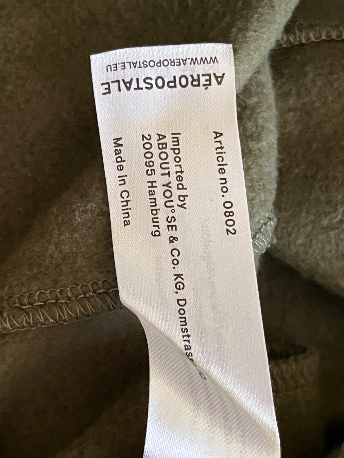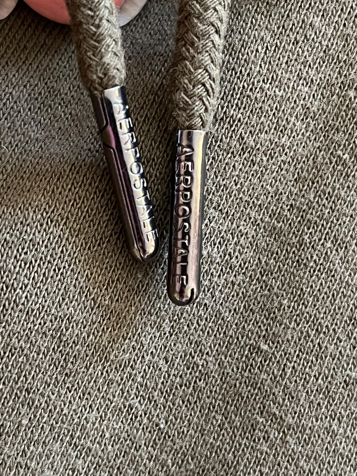 Po bokoch majú vrecká, na ľavej nohe je nápis NY-87. V páse je regulované sťahovanie na šnúrku, na konci kovového ukončenia je vyrazený nápis AEROPOSTALE. Na kovových ukončeniach dierok je vyrazený rok založenia značky 1987.