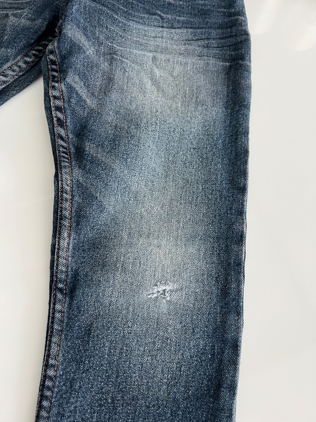 Kolená sú jemné vyšuchané a na jednej nohe je dierka.