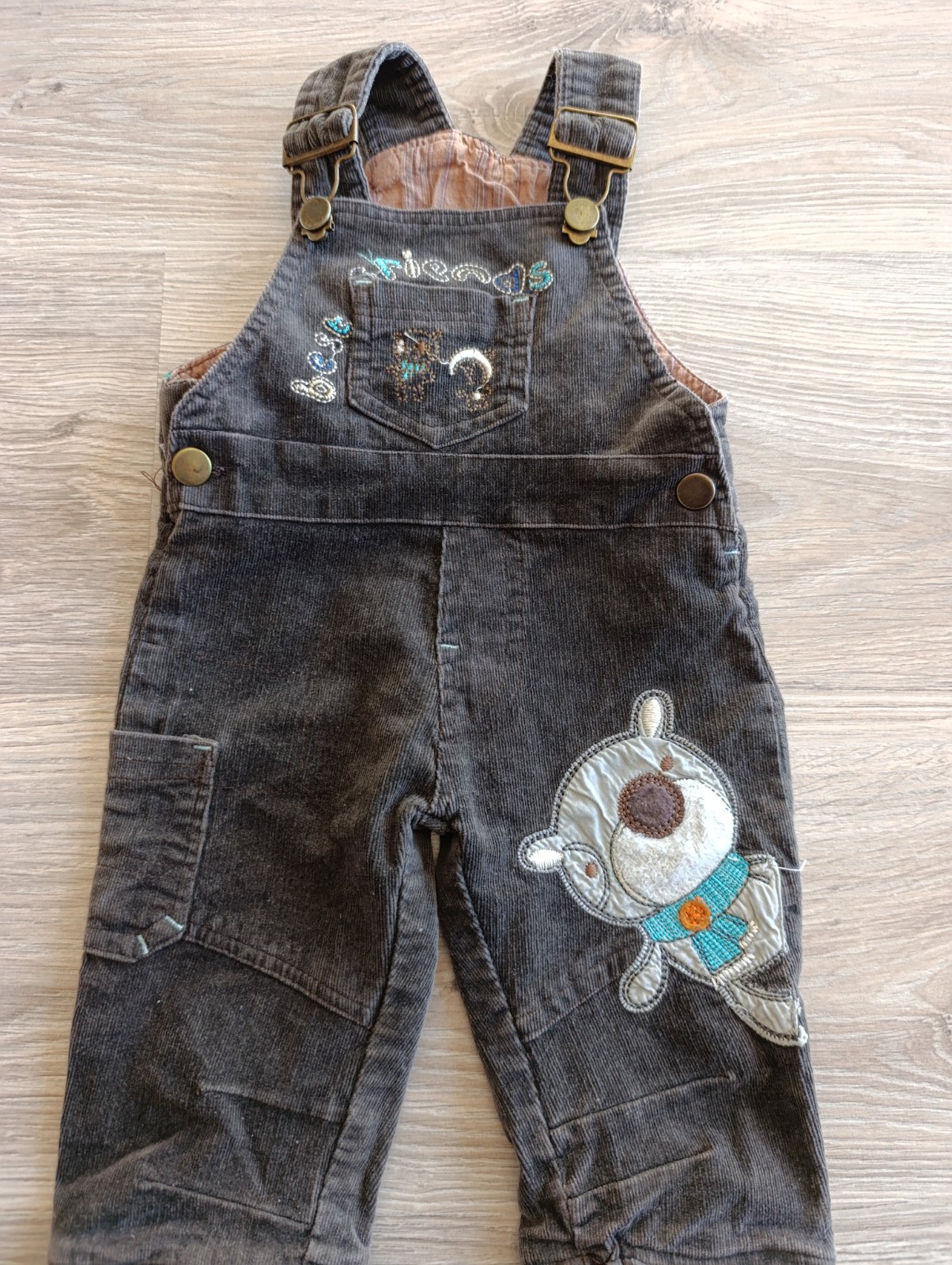 Nohavice na chladnejšiu jeseň, zimu. Sú zateplené jemným flísom a vrchná látka je z jemného menčestru. Bez poškodenia. Dĺžka bez trakov je 53cm, šírka nohavíc je 32cm, dĺžka nohavice od rozkroku 24cm.