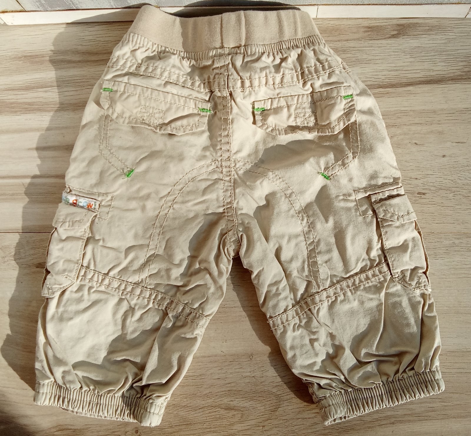 Predám krásne kapsáčové detské nohavice značky TU, vo veľkosti od 62 do 68. Nenosené, raz použité, opraté. Teplé, vypodšívkované modrou látkou, zaväzovanie v páse so zeleným špagátom.