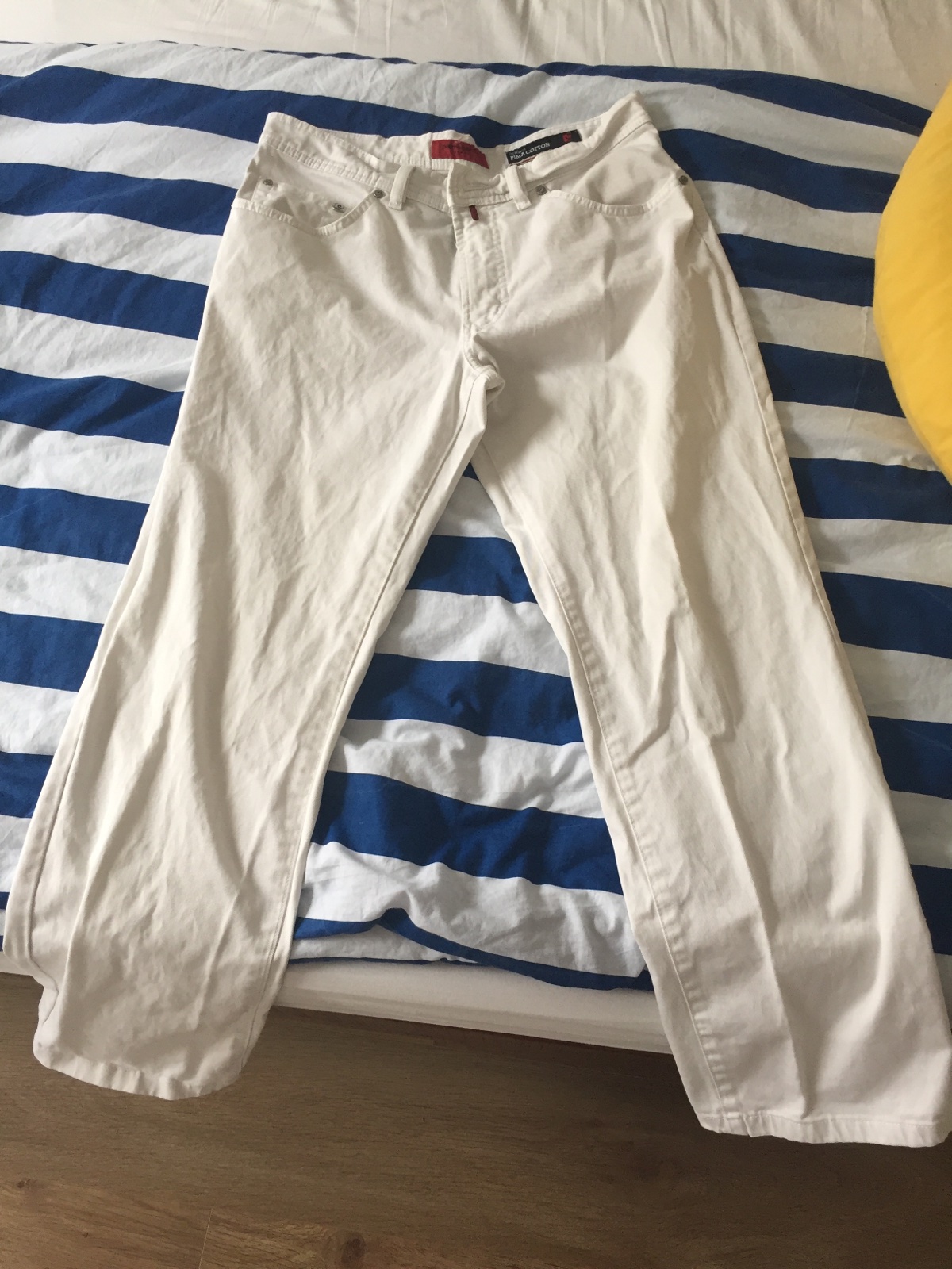 Guess nohavice, tenke ľahké, farba nie čisto biela. Odhadom veľkosť, riaďte sa mierami