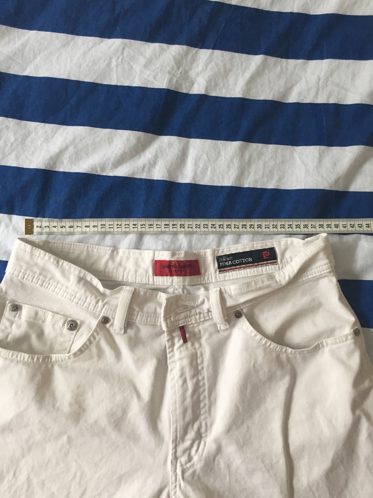 Su širokého strihu bedrovy sed perfektne na leto krasne prepracovane stredom z vnut strany cierne pasy super 100 % stav .