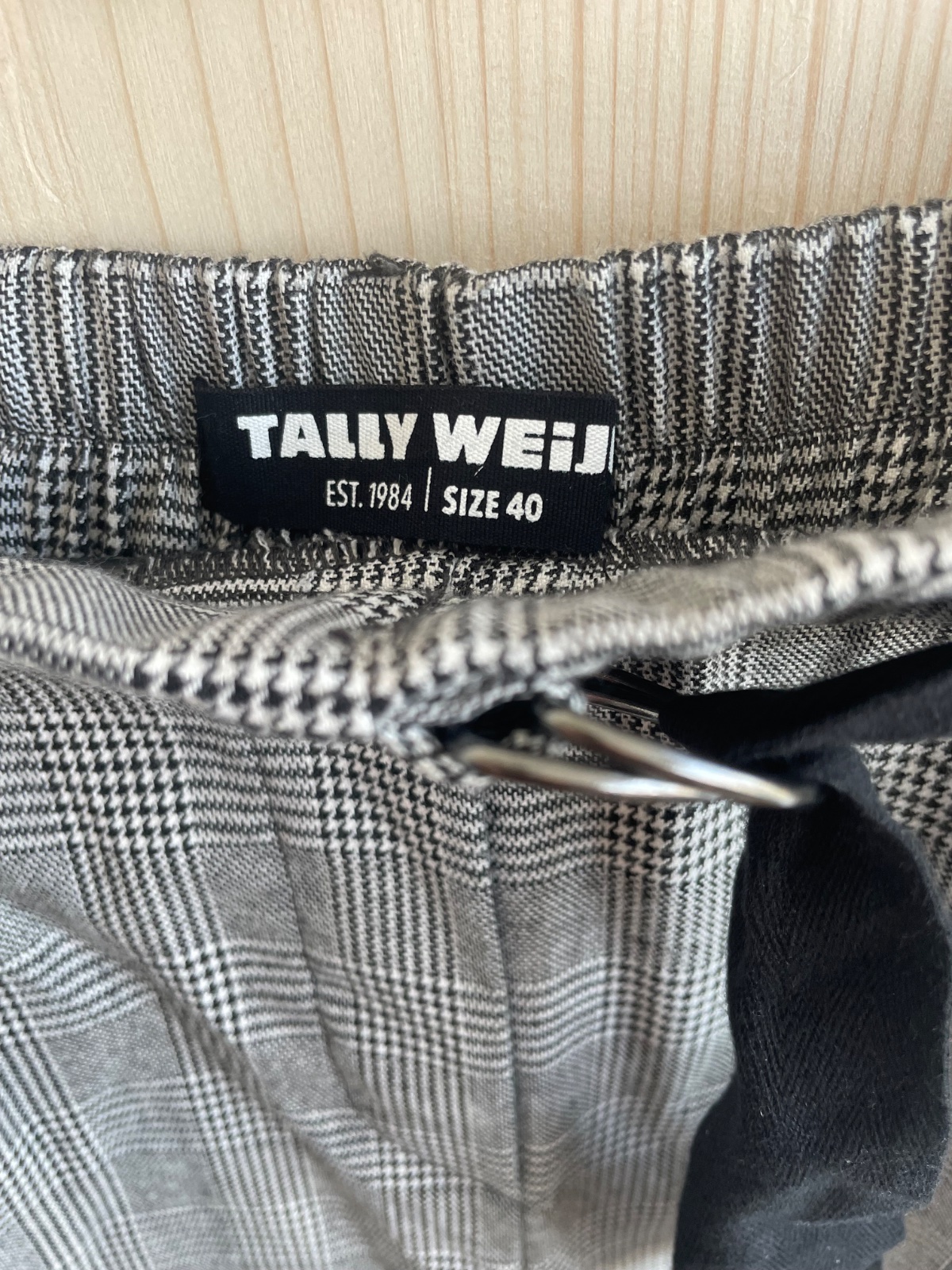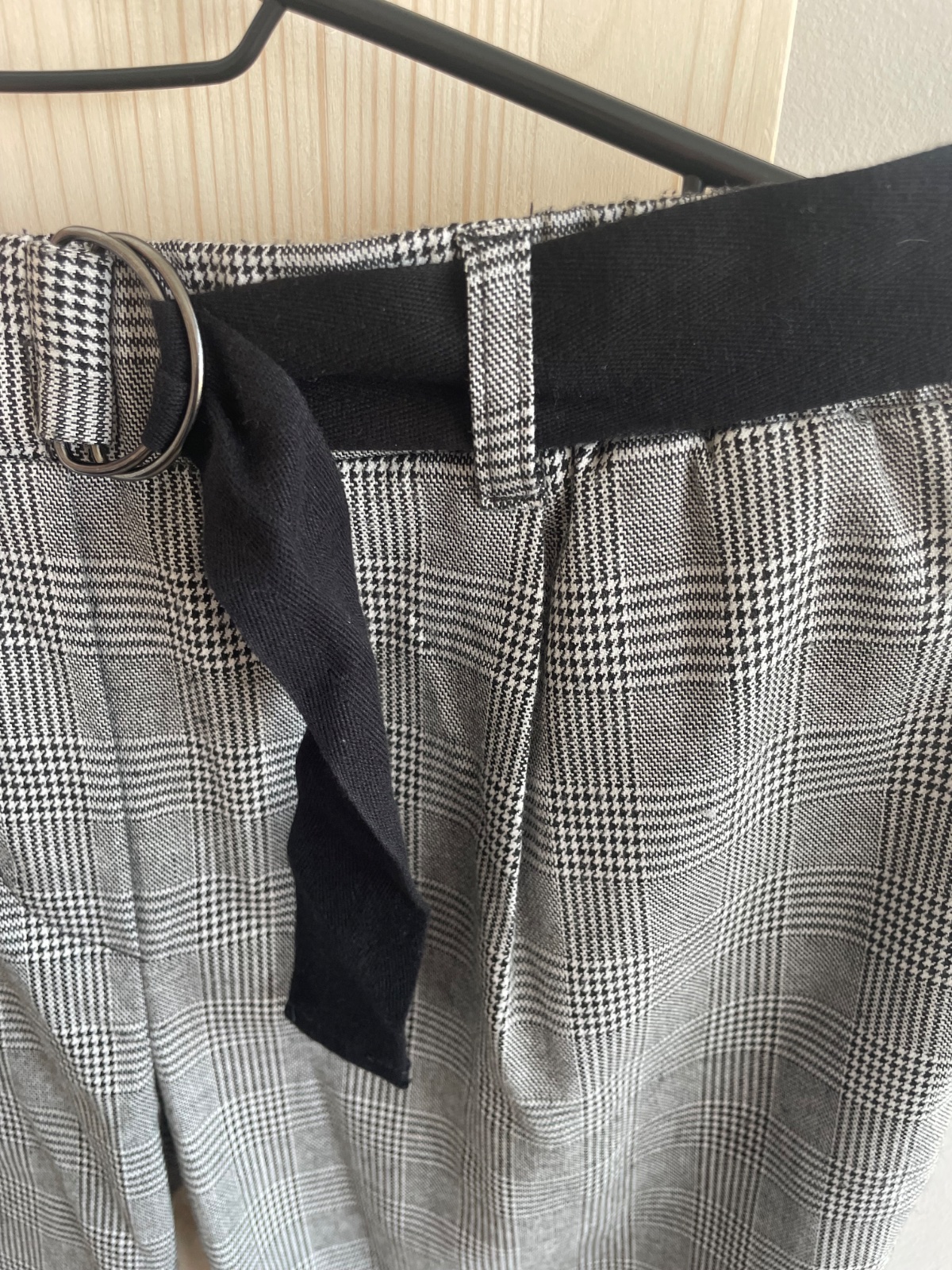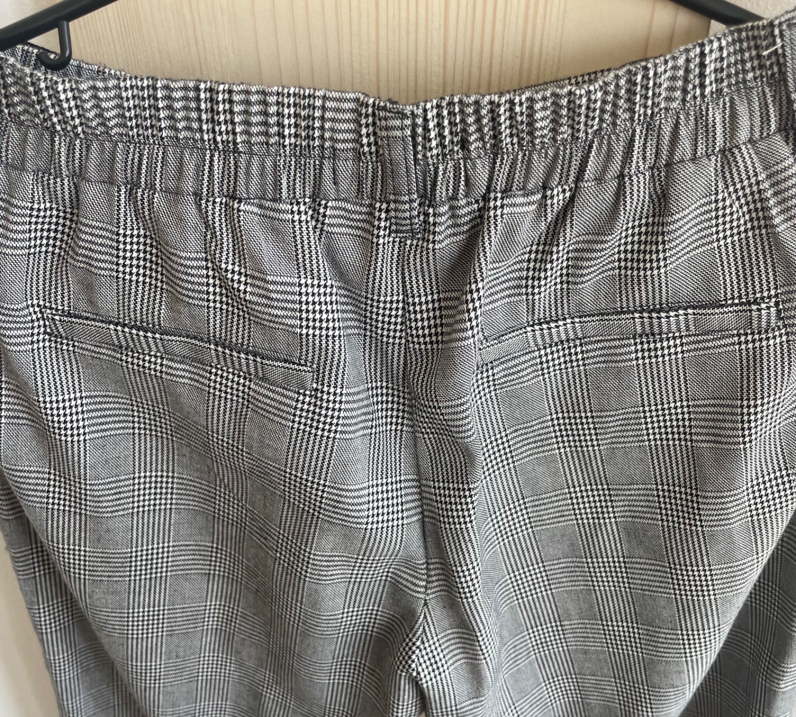 Karovane elegantne nohavice s bocnymi vreckami, v pase i na gumu, zadne vrecka su falosne, so zaujimavym poloopaskom, bez poskodeni