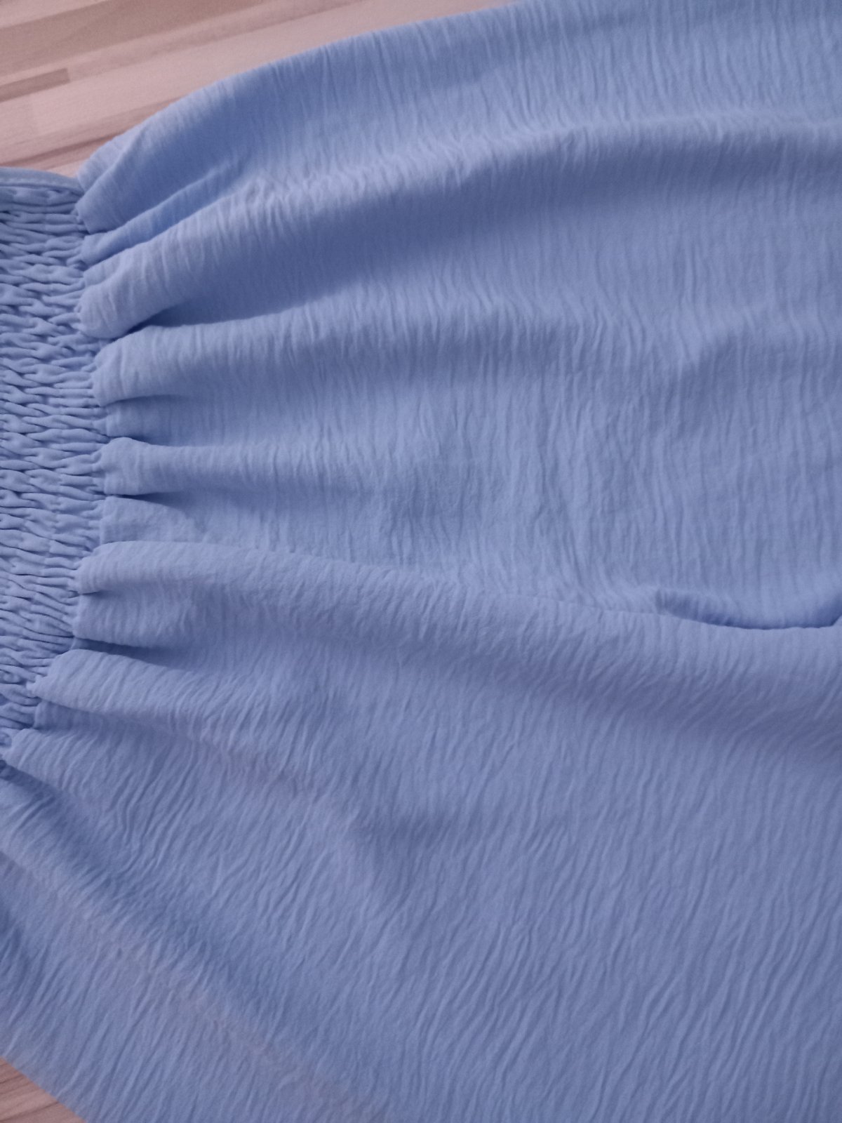 Top stav raz oblečené. Veľkosť UNI no sedia na M-L.V páse jemná gumička prispôsobia sa.Super pohodlné v bazáriku mám k nim aj blúzu 😉