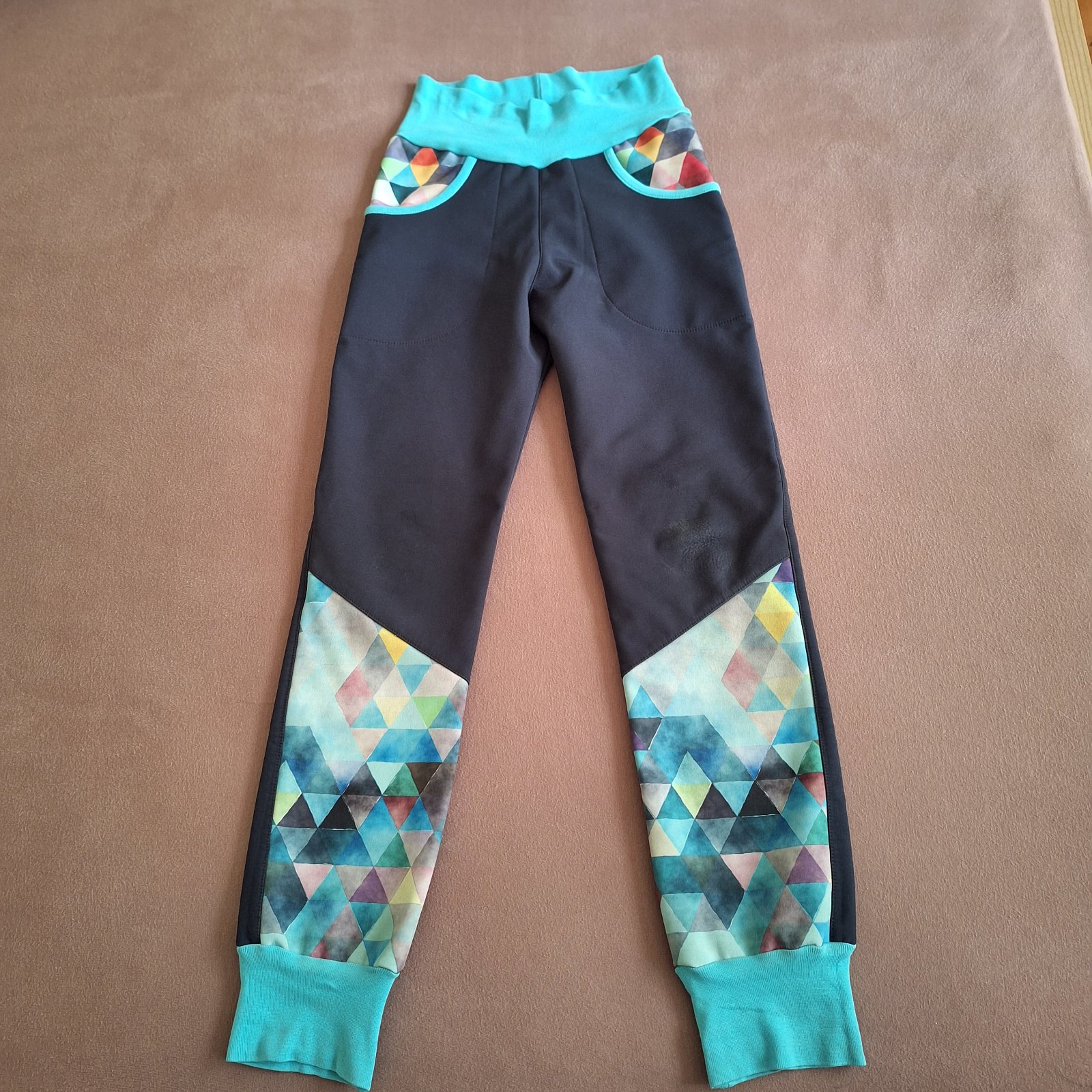Ručne šité parádne rastúce nohavice.