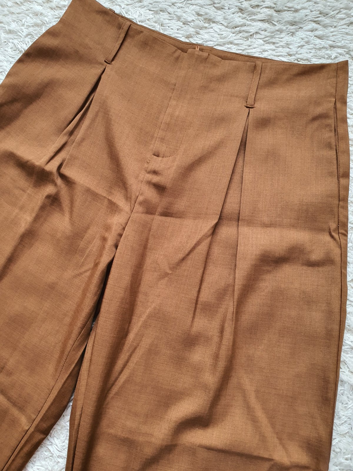Nenosené, len odtrhnutá visačka, na nižšiu postavu, mne su krátke. Farba škoricová
