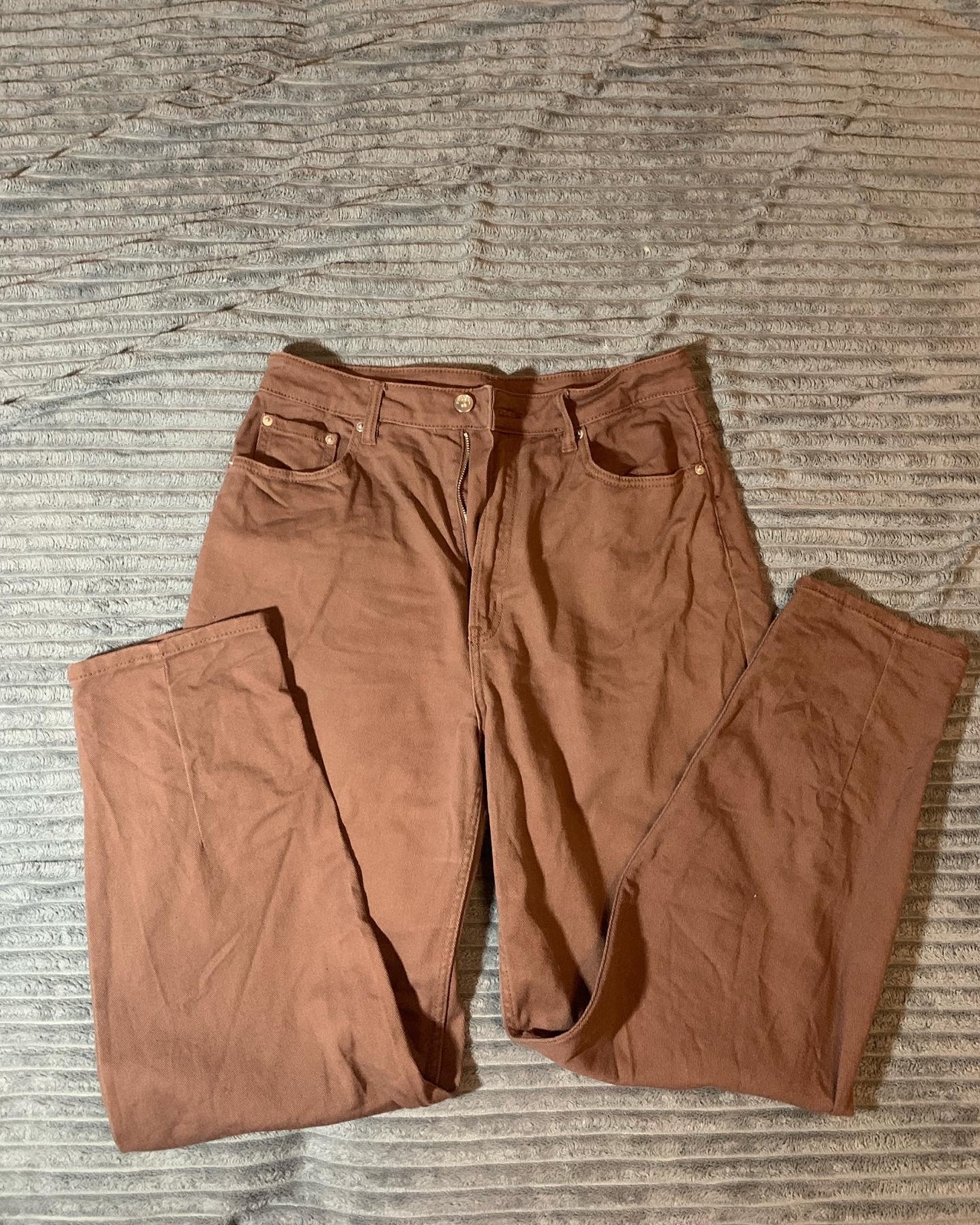 hnede mom jeans, H&M, veľkosť 42, stav 7/10, pás: 39, boky: 58, dĺžka: 105